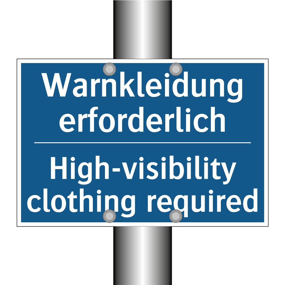 Diese Gebotsschild ist ideal für Arbeitsumgebungen, in denen das Tragen von Warnkleidung unerlässlich ist. Mit ihrer zweisprachigen Beschriftung auf Deutsch und Englisch gewährleistet sie, dass sowohl lokale als auch internationale Mitarbeiter die Sicherheitsanforderungen verstehen. Diese Schilder sind besonders nützlich in Bereichen wie Baustellen, Lagerhäusern oder Produktionsstätten, wo hohe Sichtbarkeit entscheidend für die Sicherheit ist. Die auffällige blaue Hintergrundfarbe mit weißem Text sorgt dafür, dass die Anweisung klar und deutlich wahrgenommen wird. Platzieren Sie diese Gebotsschild an Eingängen, Umkleideräumen oder anderen strategischen Punkten, um die Einhaltung der Sicherheitsvorschriften zu fördern.
