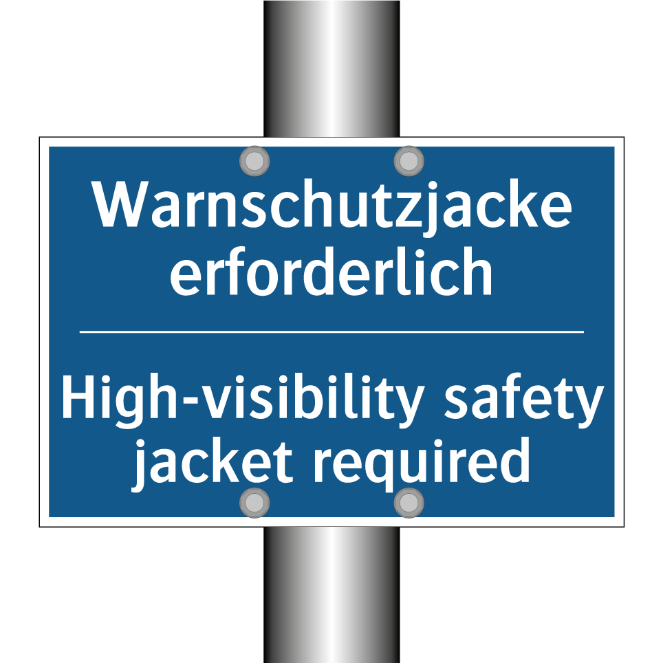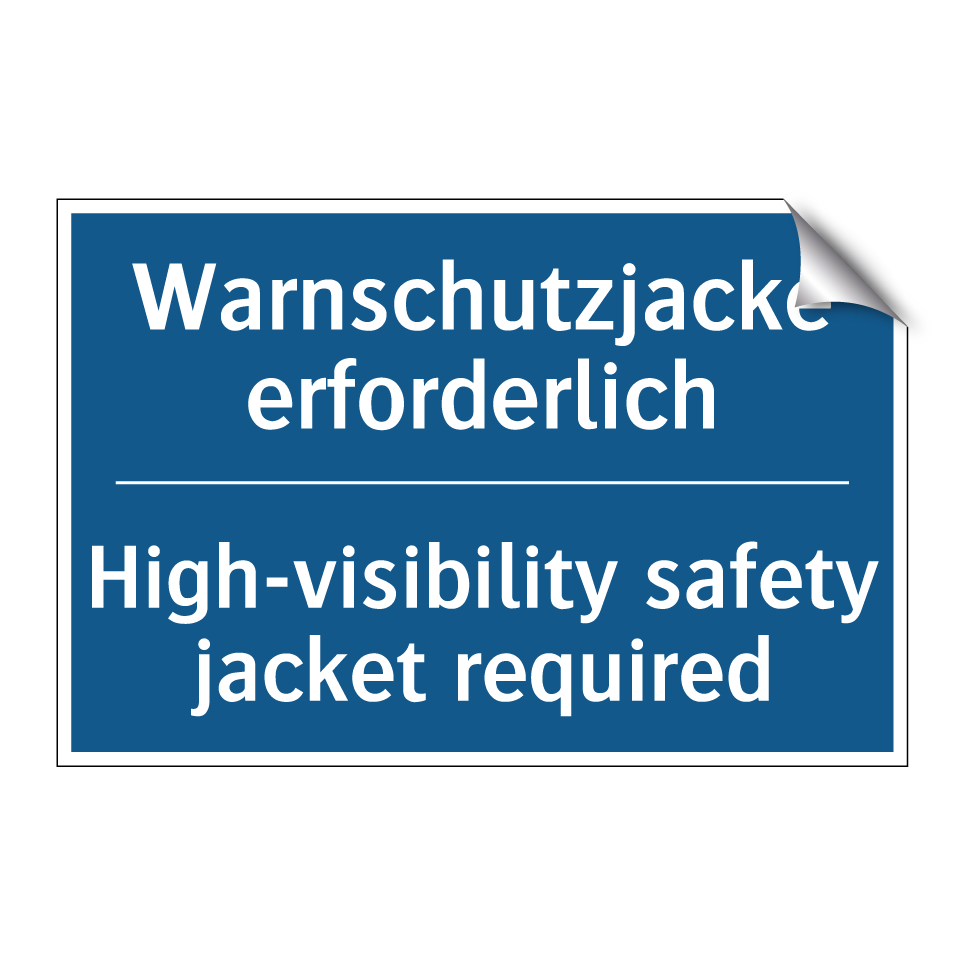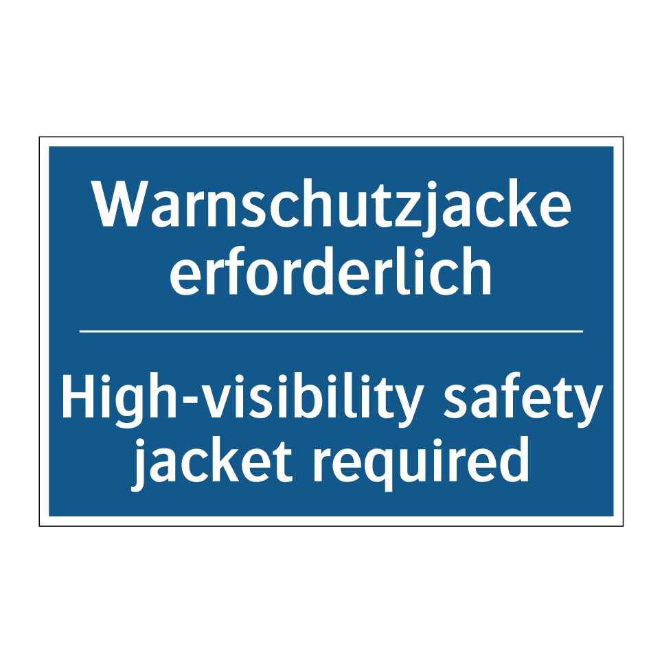 Entdecken Sie die Vielseitigkeit dieser Gebotsschild, die mit ihrer blauen Hintergrundfarbe und weißen Schrift sofort ins Auge fällt. Diese zweisprachige Beschilderung, die sowohl auf Deutsch als auch auf Englisch verfasst ist, sorgt für klare Kommunikation und erhöht die Sicherheit in internationalen Umgebungen. Ideal für Baustellen, Lagerhallen oder industrielle Bereiche, erinnert sie Mitarbeiter und Besucher daran, eine Warnschutzjacke zu tragen. Die klare Anweisung fördert die Einhaltung von Sicherheitsvorschriften und minimiert das Risiko von Unfällen. Platzieren Sie diese Gebotsschild an Eingängen, in Umkleideräumen oder an anderen strategischen Punkten, um maximale Sichtbarkeit und Wirksamkeit zu gewährleisten.