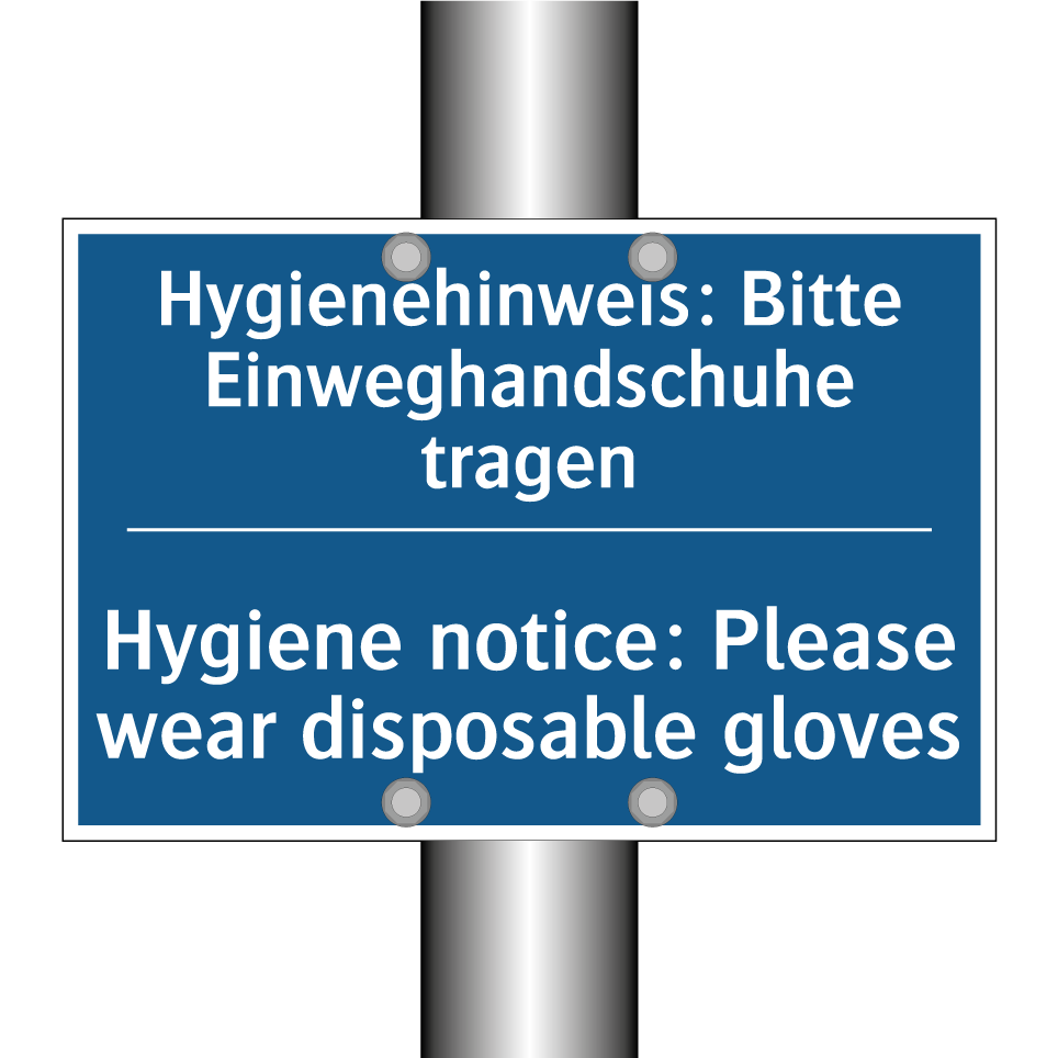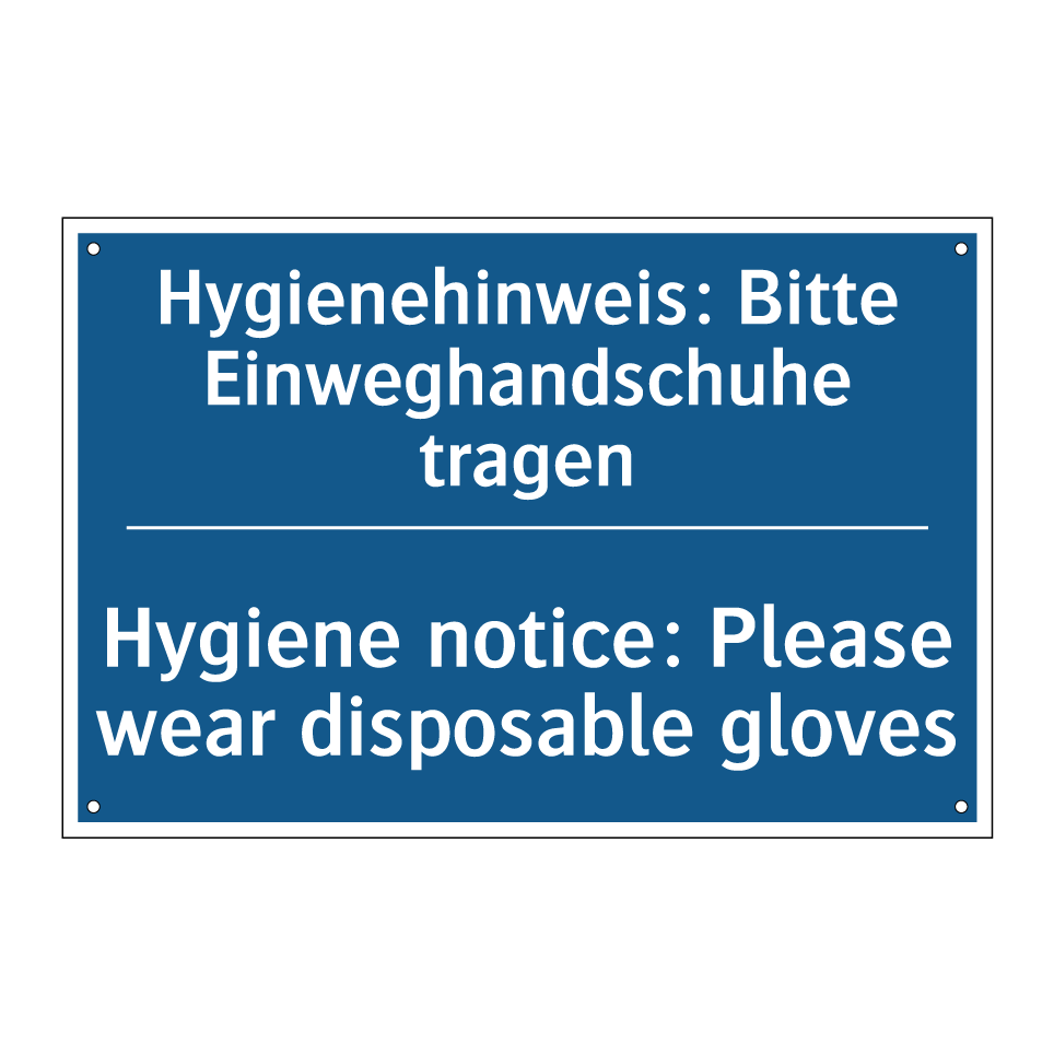 Diese Gebotsschild ist ideal für Umgebungen, in denen Hygiene oberste Priorität hat. Mit ihrer klaren blauen Hintergrundfarbe und der deutlichen weißen Schrift fordert sie zur Einhaltung von Hygienemaßnahmen auf. Die zweisprachige Beschriftung auf Deutsch und Englisch macht sie besonders geeignet für internationale Arbeitsplätze, wie Labore, Krankenhäuser oder Lebensmittelverarbeitungsbetriebe. Durch die Aufforderung, Einweghandschuhe zu tragen, wird die Verbreitung von Keimen effektiv reduziert. Diese Gebotsschild kann strategisch an Eingängen, in Umkleideräumen oder in Produktionsbereichen platziert werden, um sicherzustellen, dass alle Mitarbeiter und Besucher die Hygienerichtlinien befolgen. Die zweisprachige Gestaltung erhöht die Verständlichkeit und sorgt für eine breitere Akzeptanz.