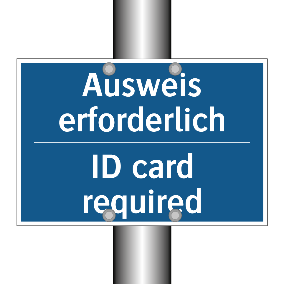 Zweisprachiges Verbotsschild mit deutschem Text Ausweis erforderlich und englischem Text ID card required