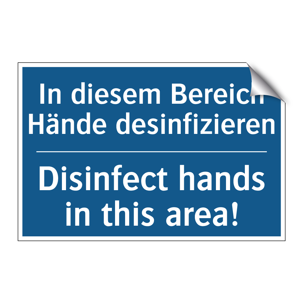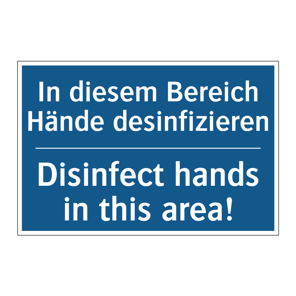 Zweisprachiges Verbotsschild mit deutschem Text In diesem Bereich Hände desinfizieren und englischem Text Disinfect hands in this area!