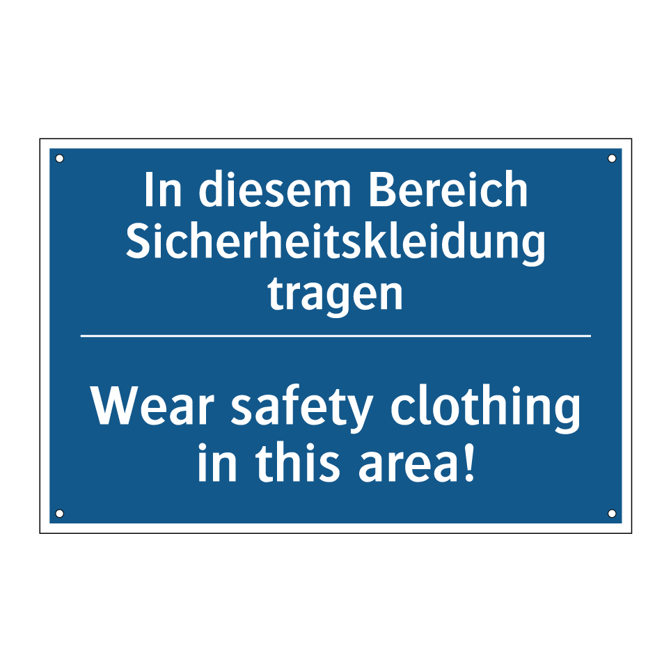 Zweisprachiges Verbotsschild mit deutschem Text In diesem Bereich Sicherheitskleidung tragen und englischem Text Wear safety clothing in this area!