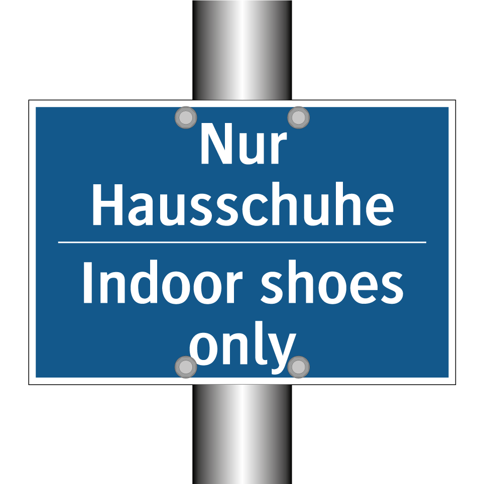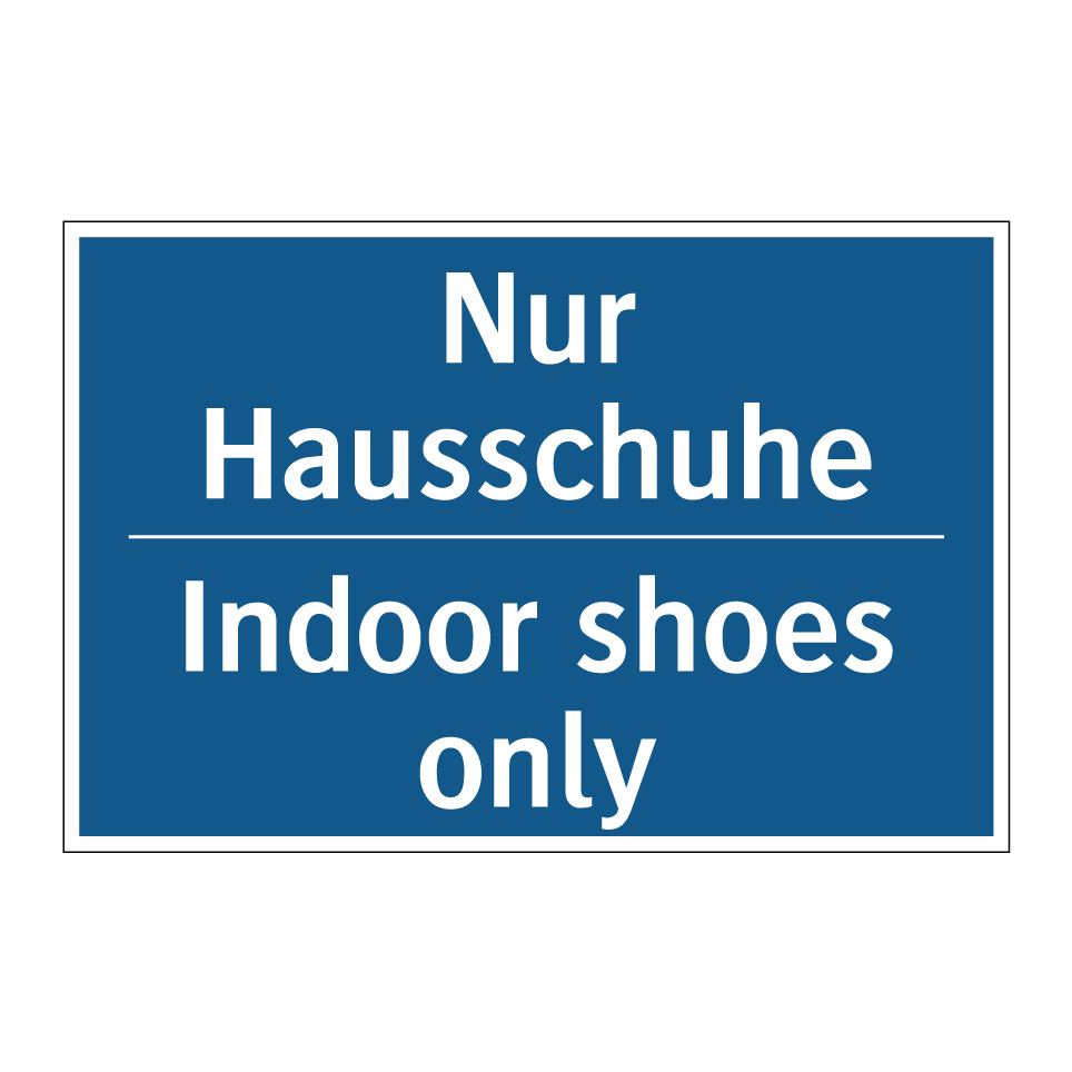 Zweisprachiges Verbotsschild mit deutschem Text Nur Hausschuhe und englischem Text Indoor shoes only