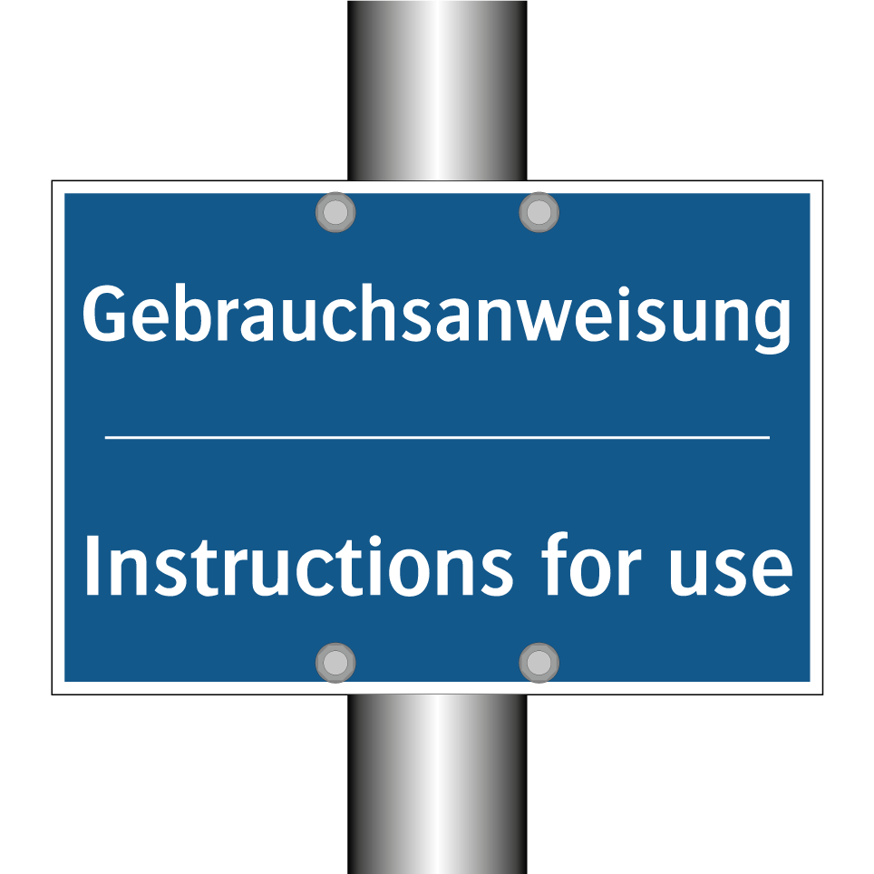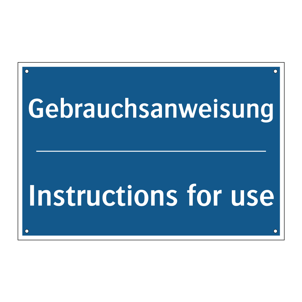 Zweisprachiges Verbotsschild mit deutschem Text Gebrauchsanweisung und englischem Text Instructions for use