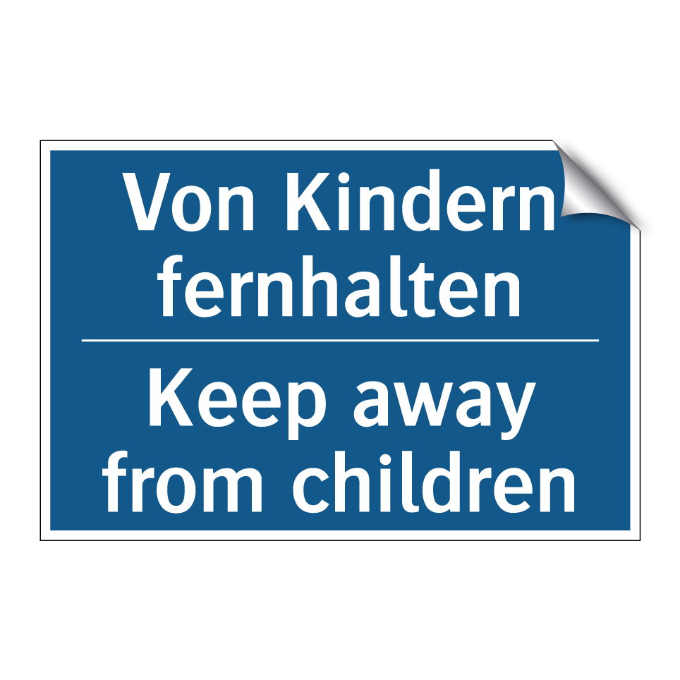 Zweisprachiges Verbotsschild mit deutschem Text Von Kindern fernhalten und englischem Text Keep away from children