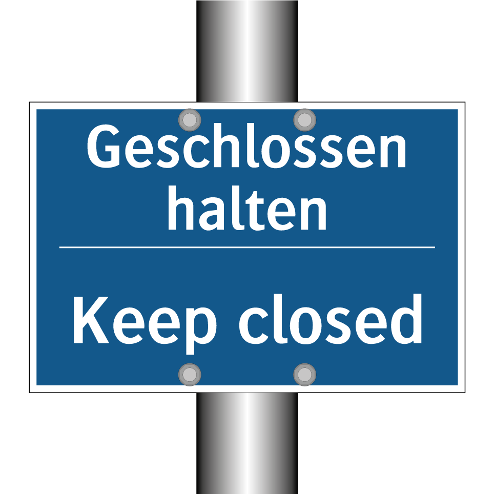 Zweisprachiges Verbotsschild mit deutschem Text Geschlossen halten und englischem Text Keep closed