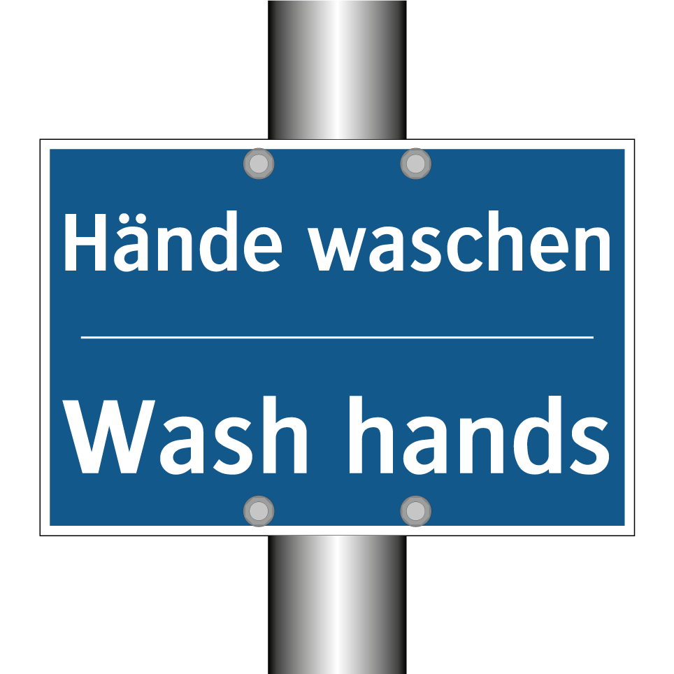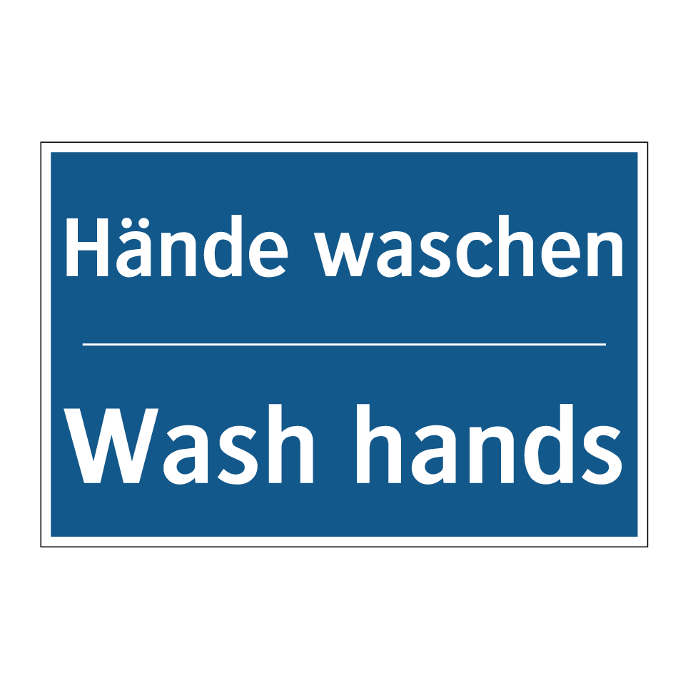 Zweisprachiges Verbotsschild mit deutschem Text Hände waschen und englischem Text Wash hands