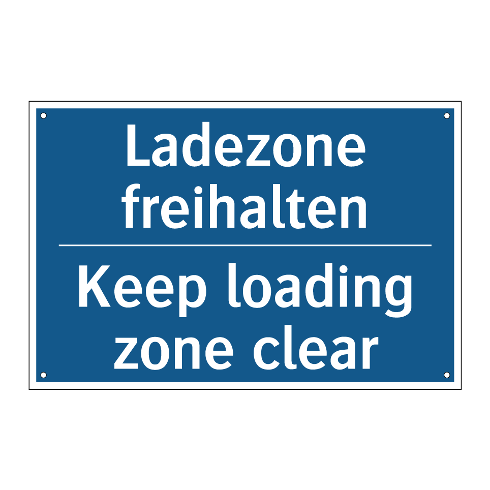 Zweisprachiges Verbotsschild mit deutschem Text Ladezone freihalten und englischem Text Keep loading zone clear