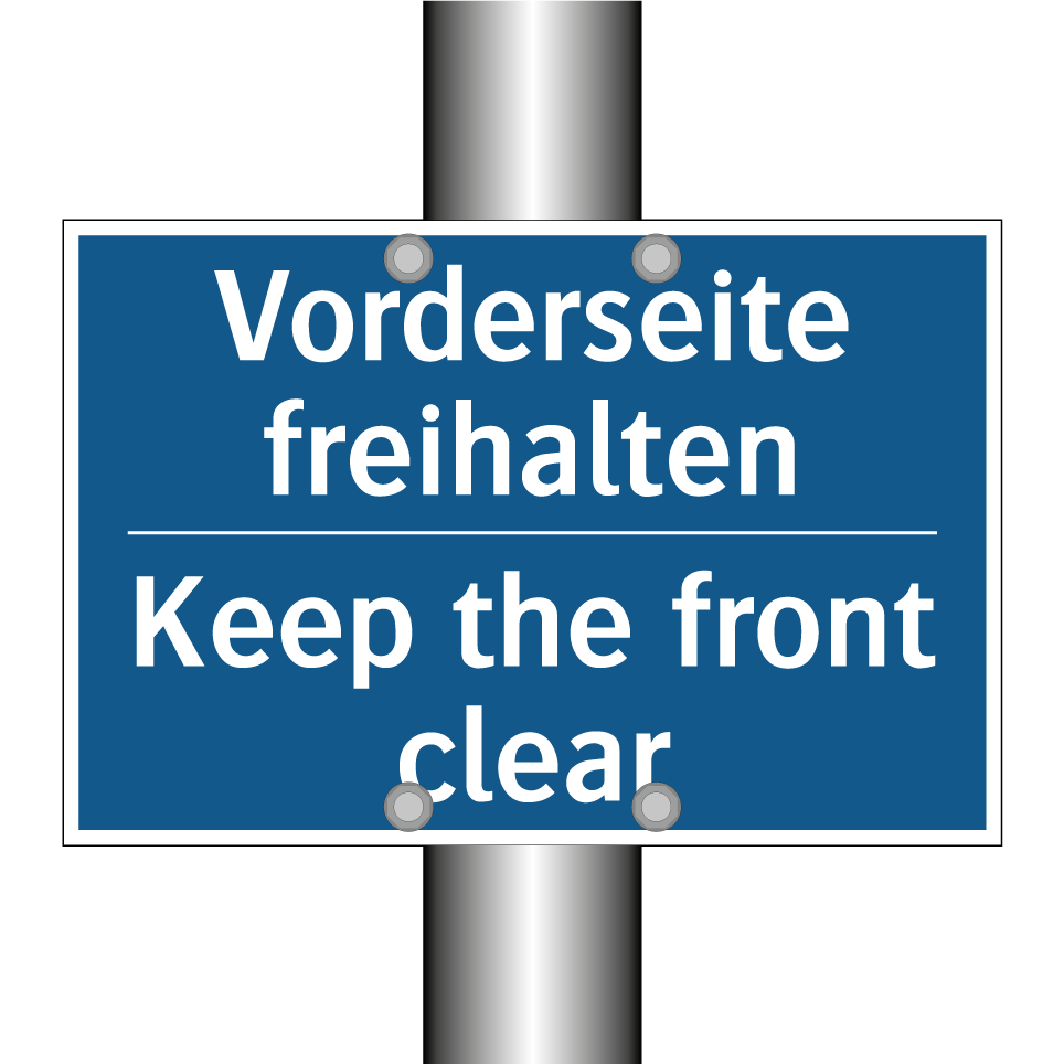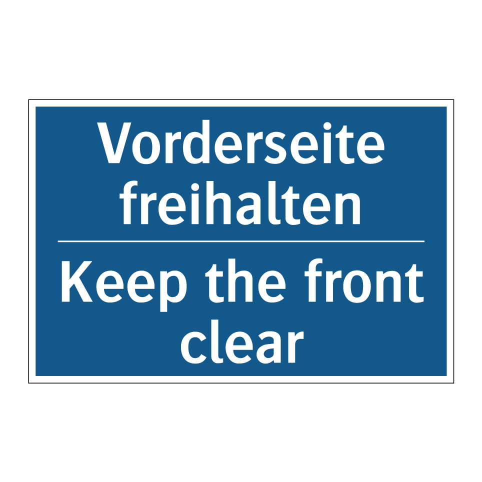 Zweisprachiges Verbotsschild mit deutschem Text Vorderseite freihalten und englischem Text Keep the front clear