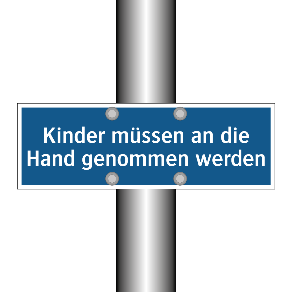 Gebotsschild mit dem Text Kinder müssen an die Hand genommen werden