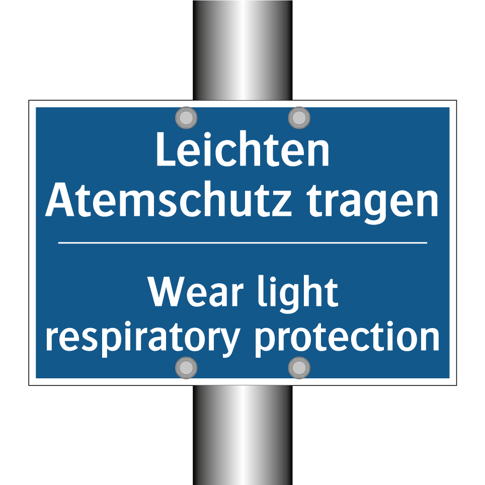 Entdecken Sie die Vielseitigkeit dieser Gebotsschild, die mit ihrer blauen Hintergrundfarbe und weißen Schrift sofort ins Auge fällt. Diese zweisprachige Beschilderung, die sowohl auf Deutsch als auch auf Englisch verfasst ist, bietet klare Anweisungen zur Verwendung von leichtem Atemschutz. Die internationale Verständlichkeit macht sie ideal für Arbeitsplätze mit multikulturellen Teams oder internationalen Besuchern. Platzieren Sie diese Gebotsschild in Bereichen, in denen Atemschutz erforderlich ist, wie in Produktionshallen, Laboren oder Baustellen. Die klare Botschaft fördert die Sicherheit und das Wohlbefinden aller Anwesenden und sorgt für ein sicheres Arbeitsumfeld.