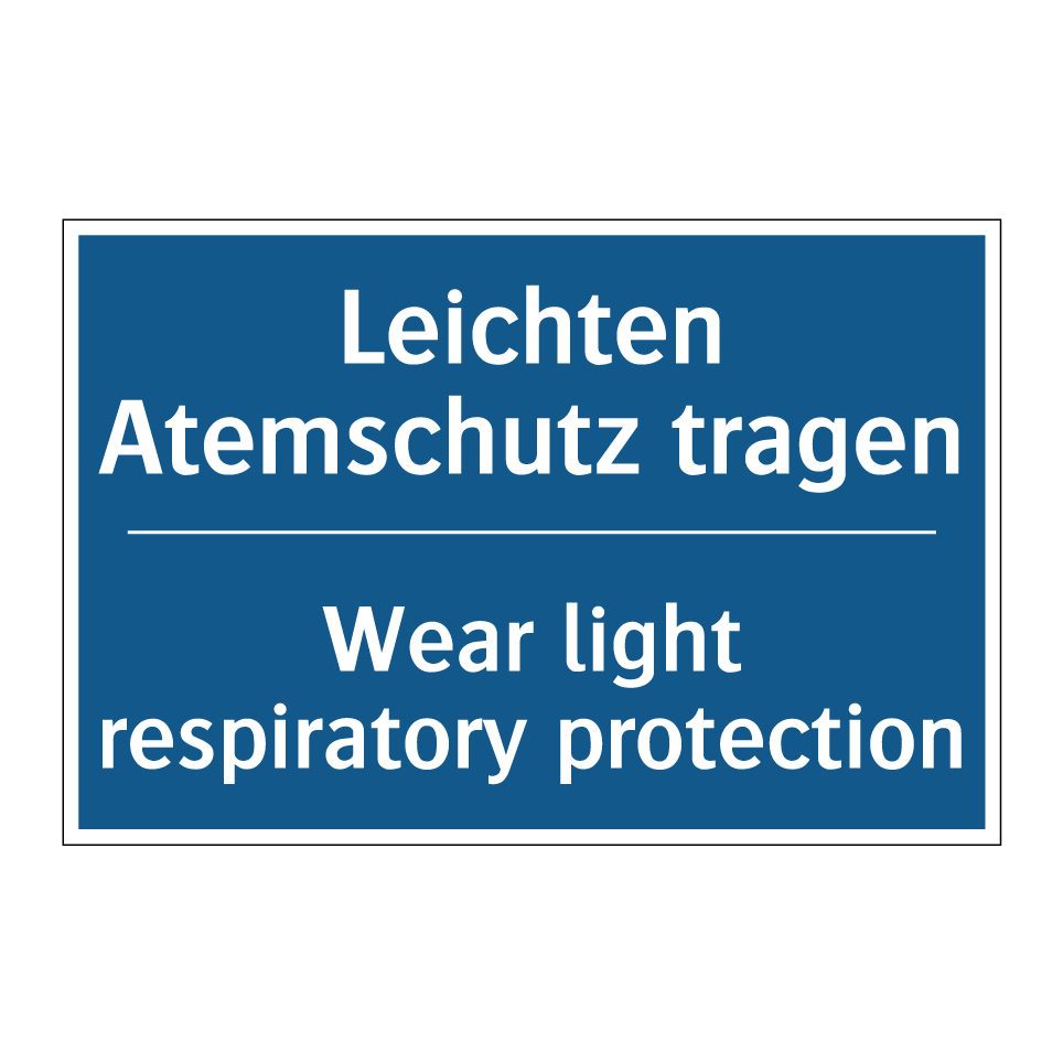 Zweisprachiges Verbotsschild mit deutschem Text Leichten Atemschutz tragen und englischem Text Wear light respiratory protection