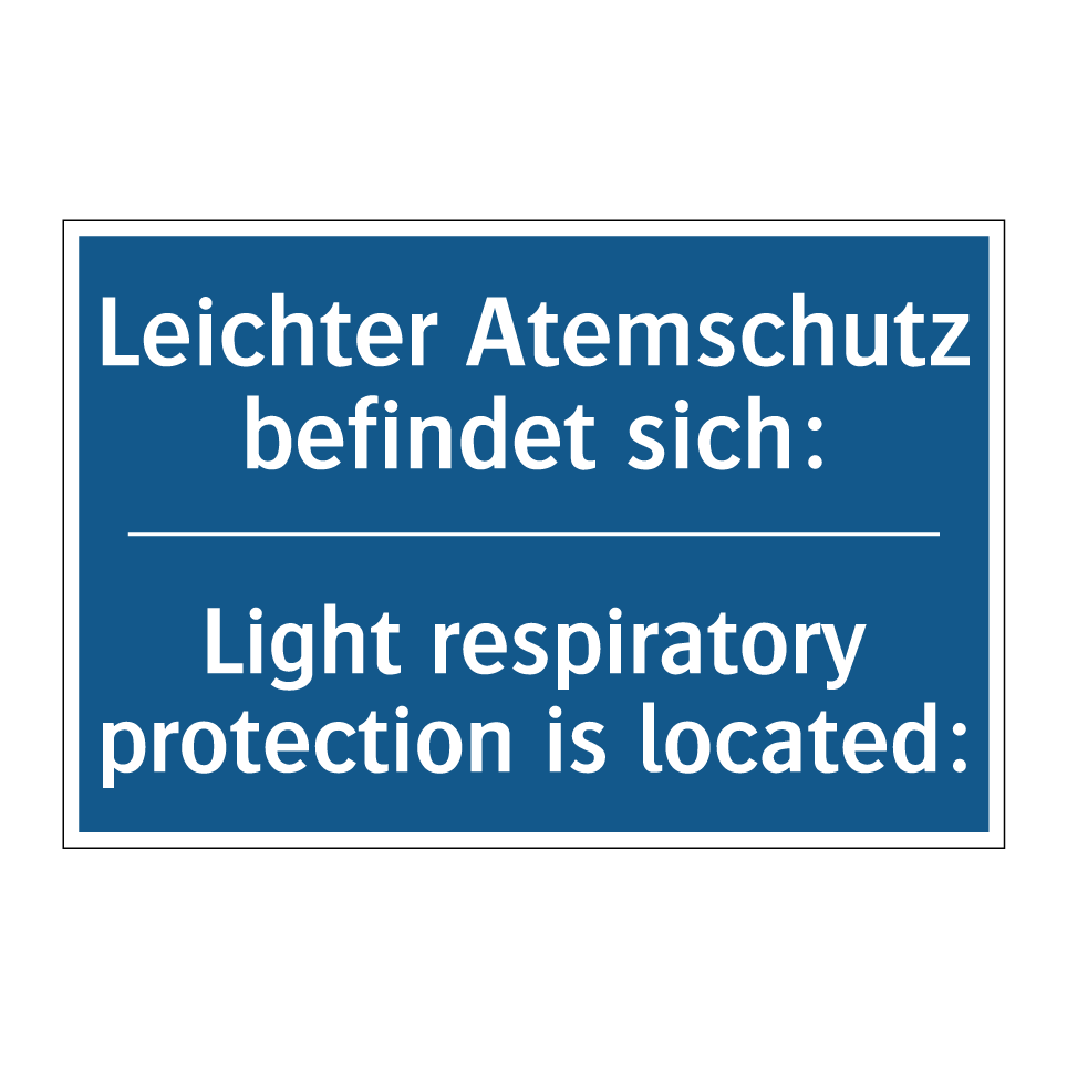 Zweisprachiges Verbotsschild mit deutschem Text Leichter Atemschutz befindet sich: und englischem Text Light respiratory protection is located: