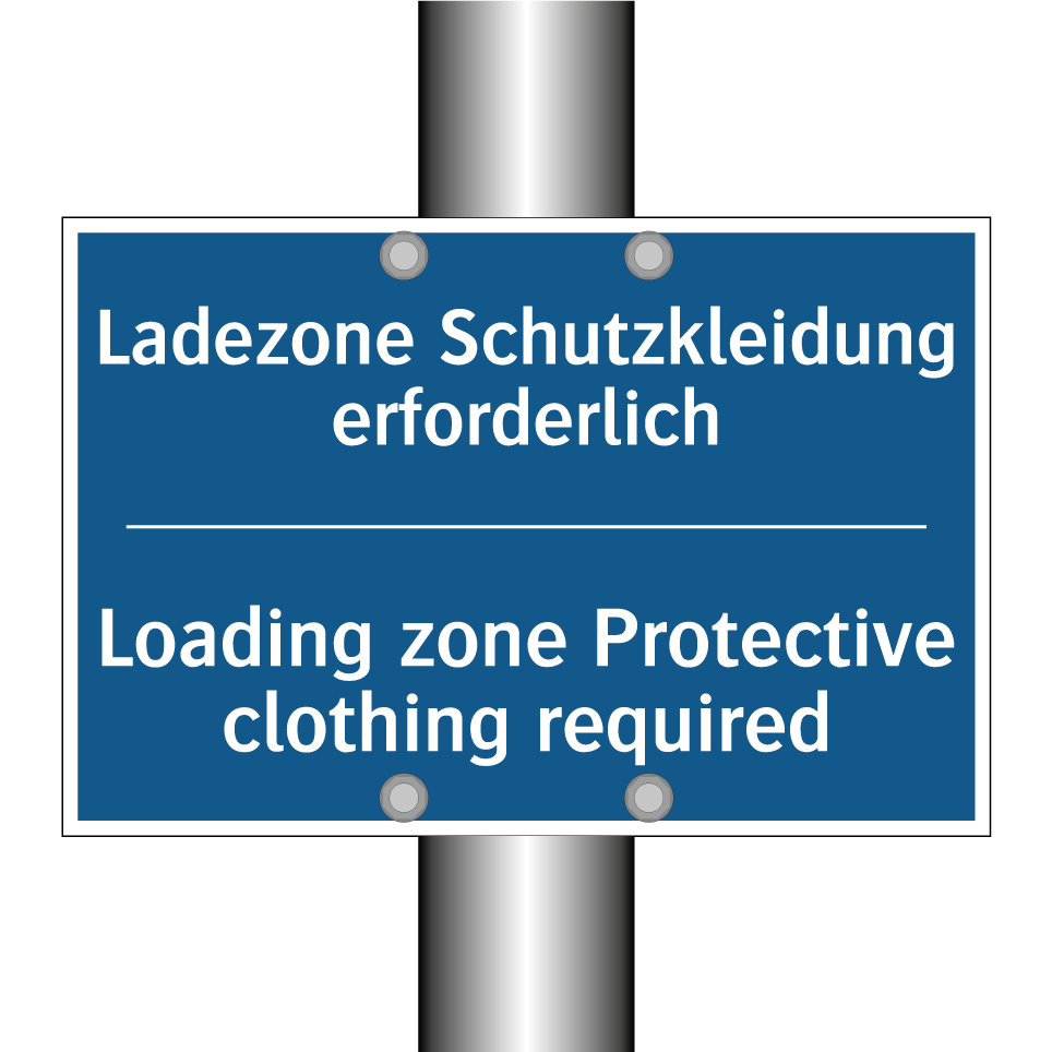 Entdecken Sie die Vielseitigkeit dieser Gebotsschild, die speziell für Ladezonen entwickelt wurde. Diese zweisprachige Beschilderung, mit Text auf Deutsch und Englisch, sorgt für klare Kommunikation und erhöht die Sicherheit in internationalen Umgebungen. Ideal für Lagerhäuser, Verladebereiche und industrielle Standorte, erinnert sie daran, dass Schutzkleidung in diesen Bereichen unerlässlich ist. Die auffällige blaue Hintergrundfarbe mit weißem Text zieht sofort die Aufmerksamkeit auf sich und stellt sicher, dass die Sicherheitsvorschriften eingehalten werden. Platzieren Sie diese Gebotsschild an gut sichtbaren Stellen, um die Sicherheit und den Schutz aller Mitarbeiter und Besucher zu gewährleisten.