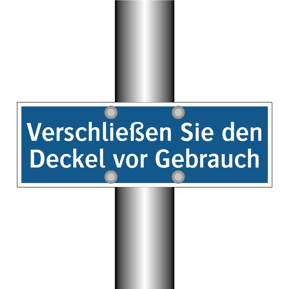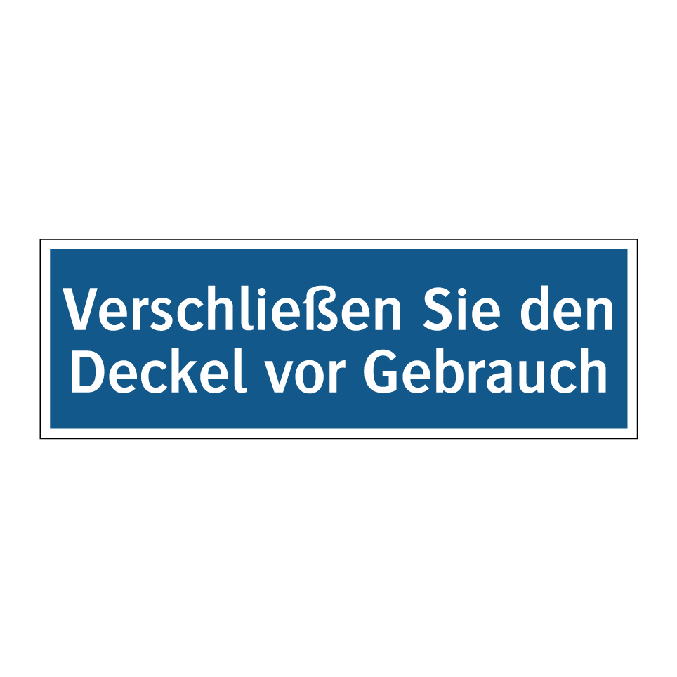 Gebotsschild mit dem Text Verschließen Sie den Deckel vor Gebrauch