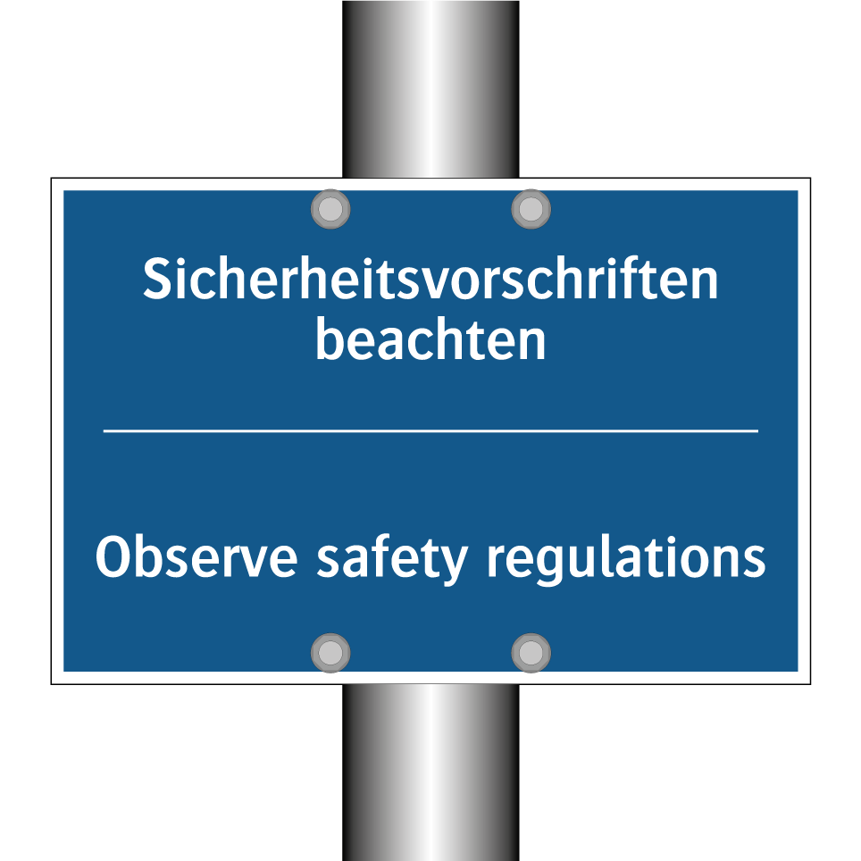 Zweisprachiges Verbotsschild mit deutschem Text Sicherheitsvorschriften beachten und englischem Text Observe safety regulations