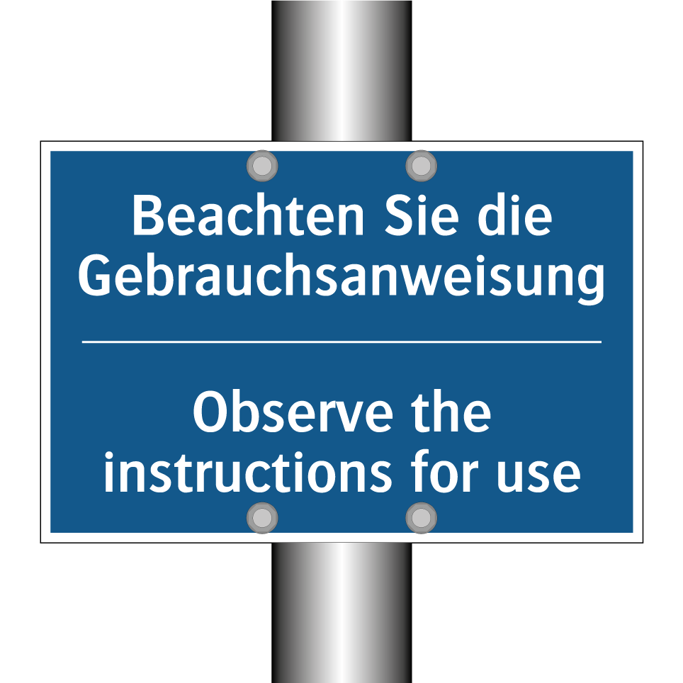 Zweisprachiges Verbotsschild mit deutschem Text Beachten Sie die Gebrauchsanweisung und englischem Text Observe the instructions for use