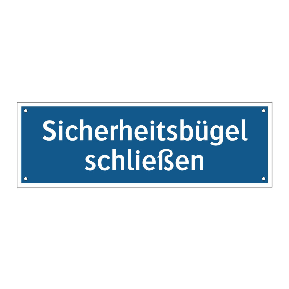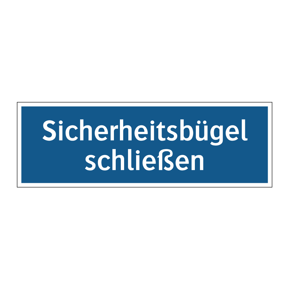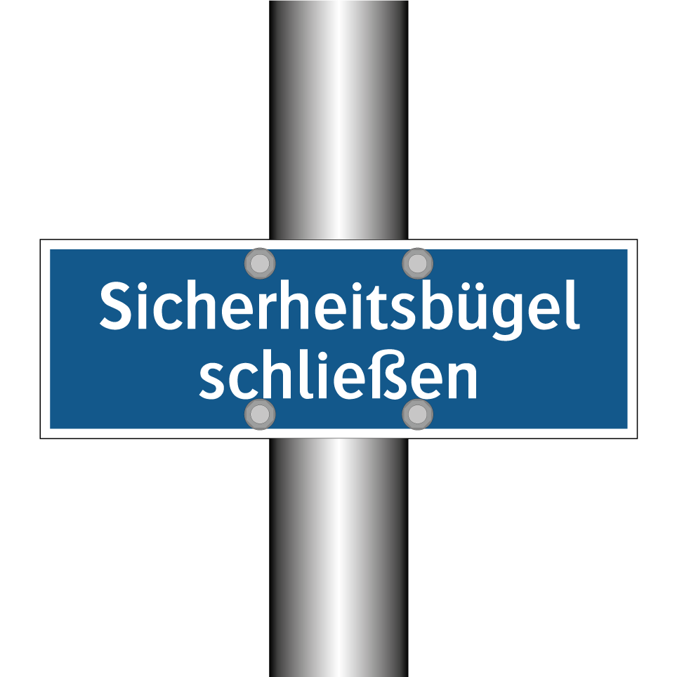 Gebotsschild mit dem Text Sicherheitsbügel schließen