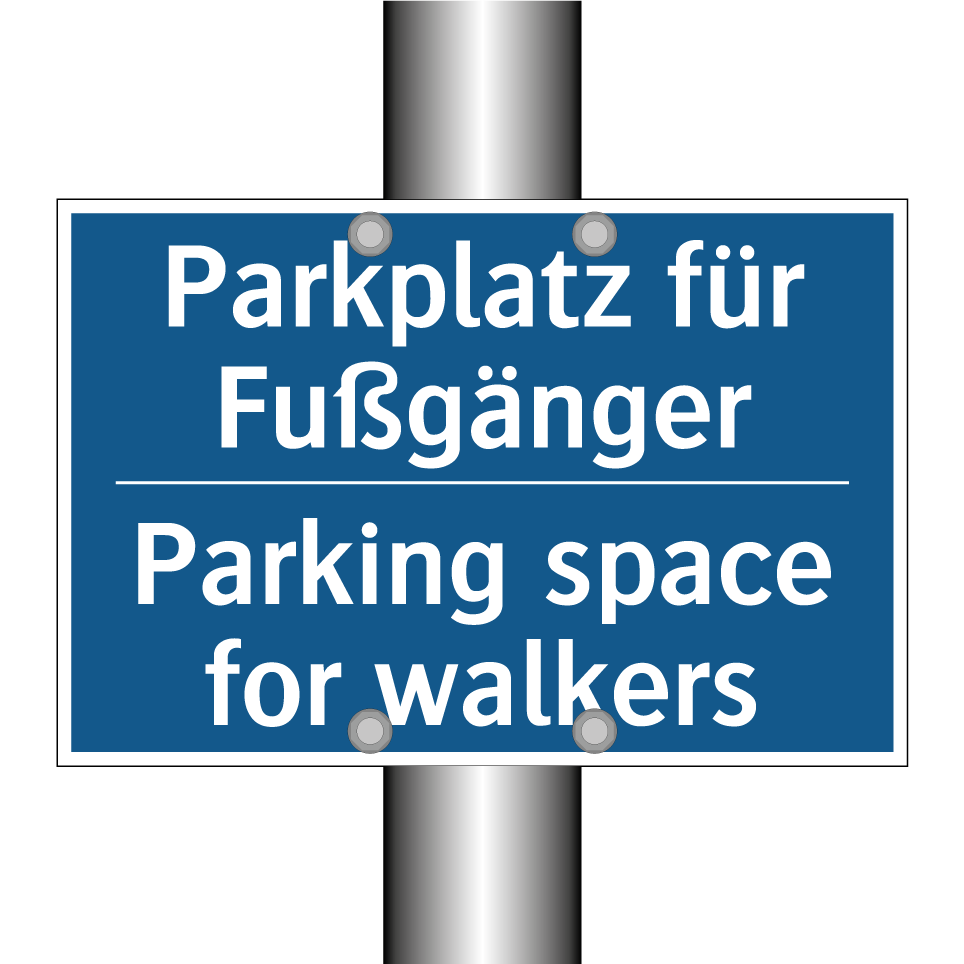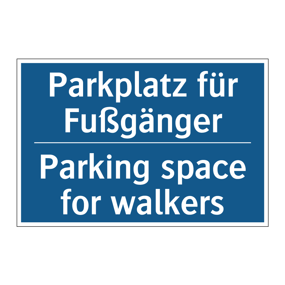 Zweisprachiges Verbotsschild mit deutschem Text Parkplatz für Fußgänger und englischem Text Parking space for walkers