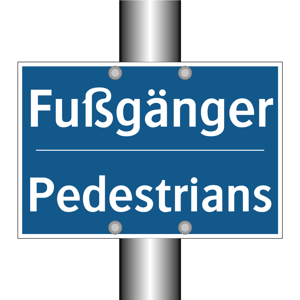 Zweisprachiges Verbotsschild mit deutschem Text Fußgänger und englischem Text Pedestrians