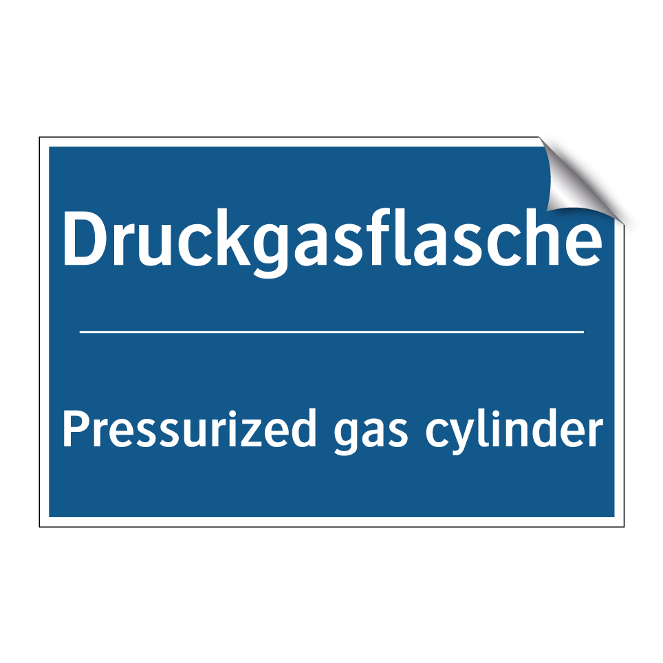 Zweisprachiges Verbotsschild mit deutschem Text Druckgasflasche und englischem Text Pressurized gas cylinder