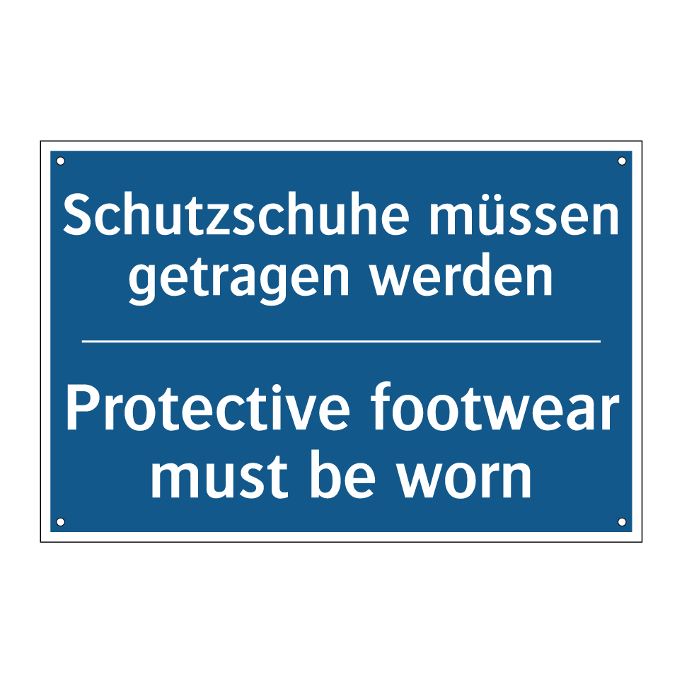 Zweisprachiges Verbotsschild mit deutschem Text Schutzschuhe müssen getragen werden und englischem Text Protective footwear must be worn