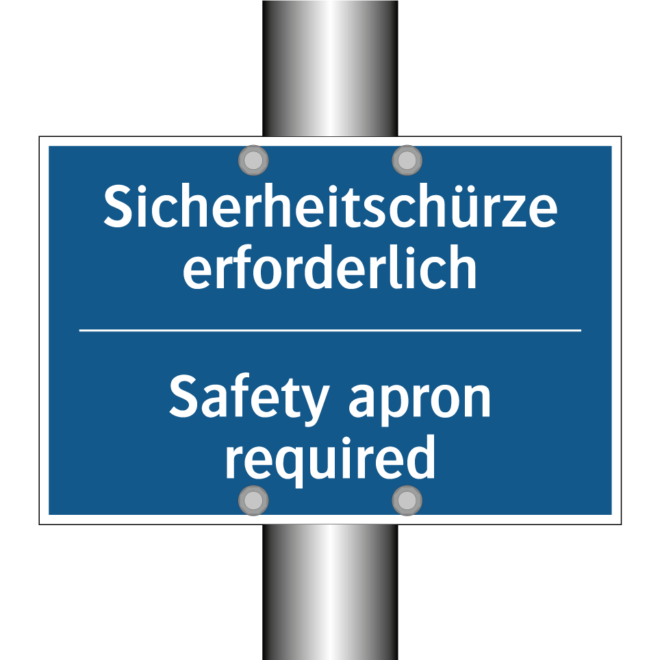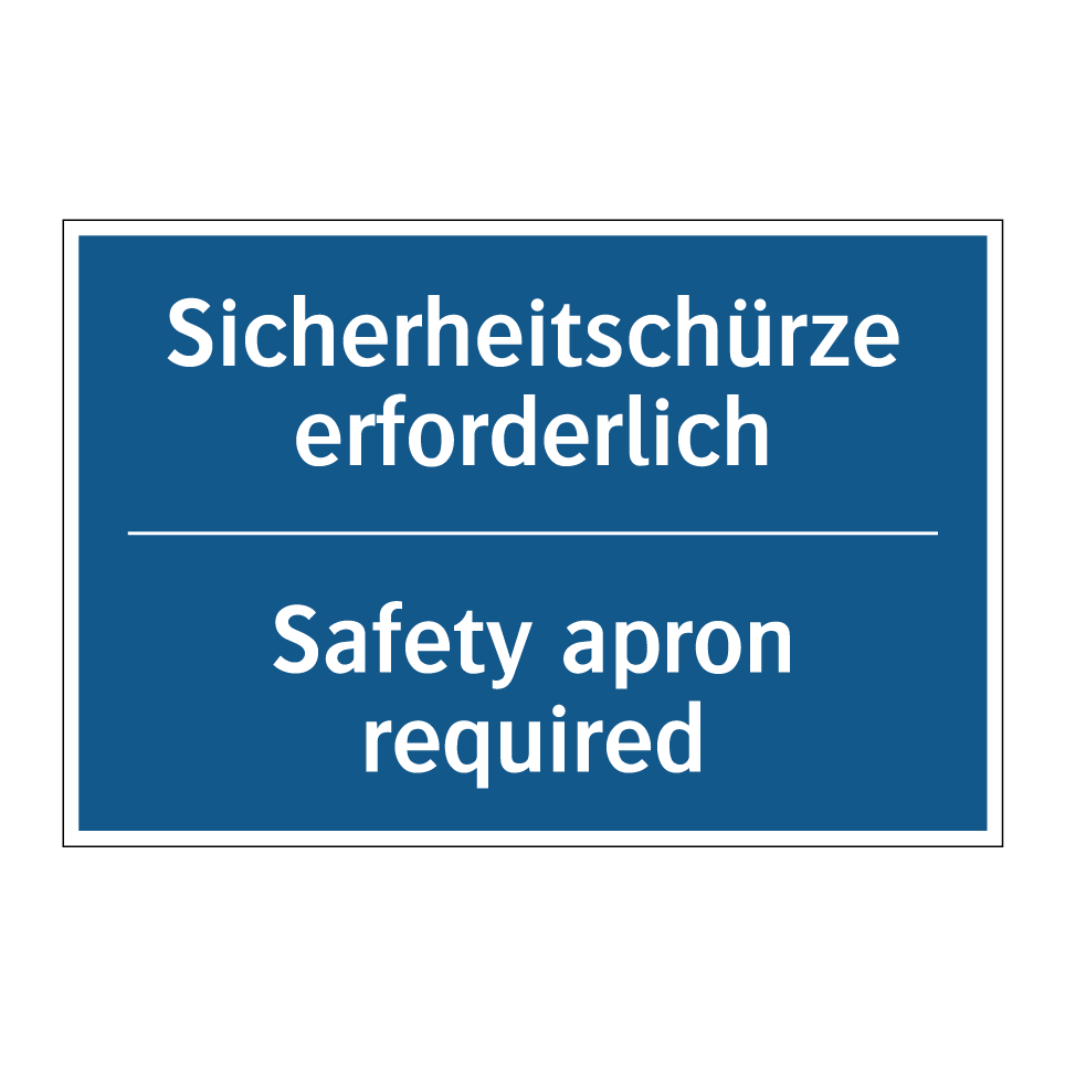 Zweisprachiges Verbotsschild mit deutschem Text Sicherheitschürze erforderlich und englischem Text Safety apron required