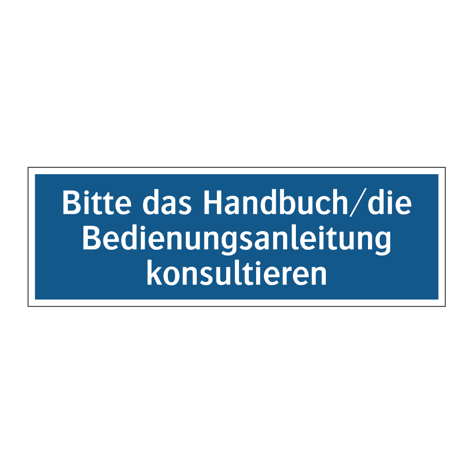Gebotsschild mit dem Text Bitte das Handbuch/die Bedienungsanleitung konsultieren