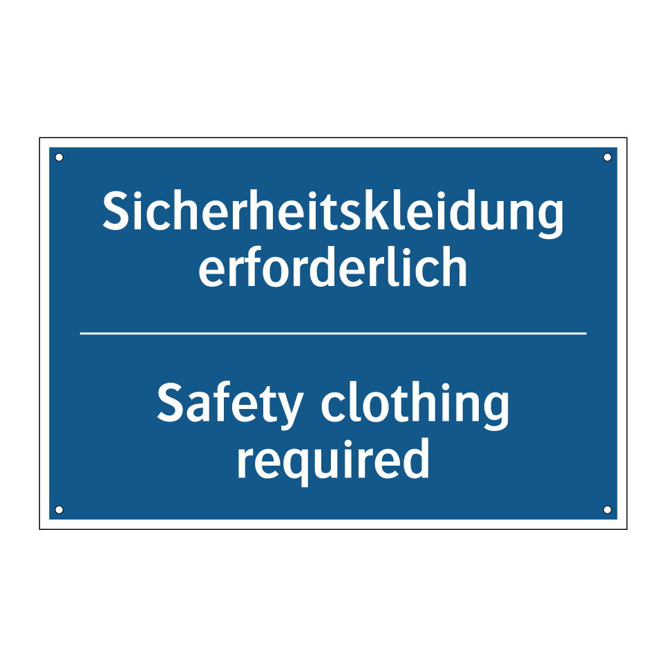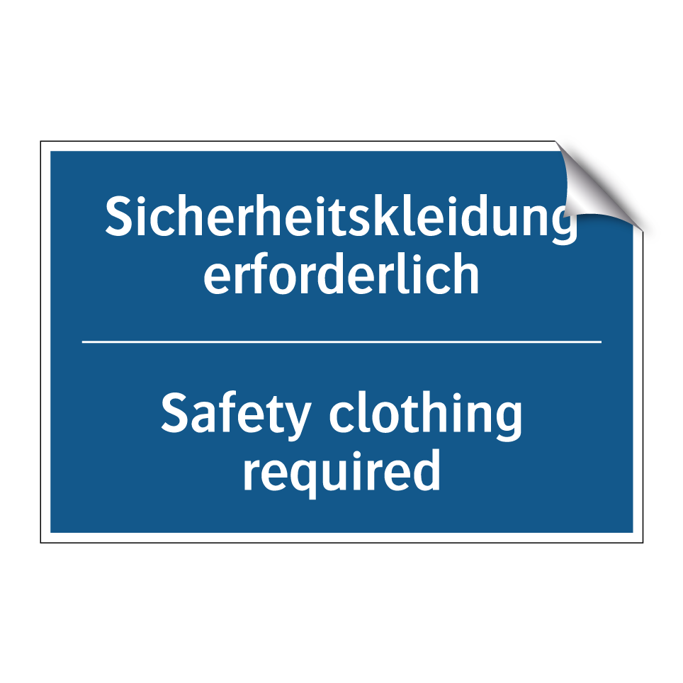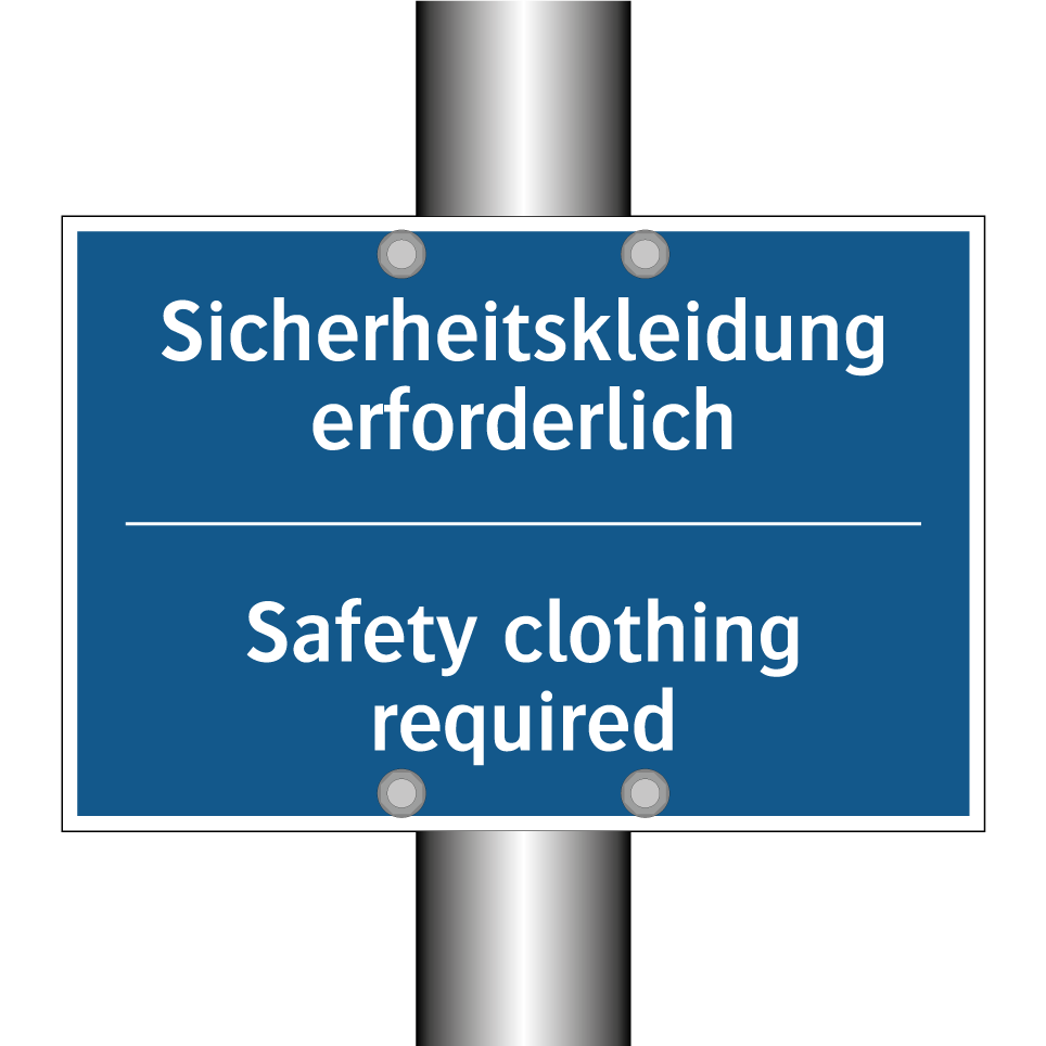 Zweisprachiges Verbotsschild mit deutschem Text Sicherheitskleidung erforderlich und englischem Text Safety clothing required