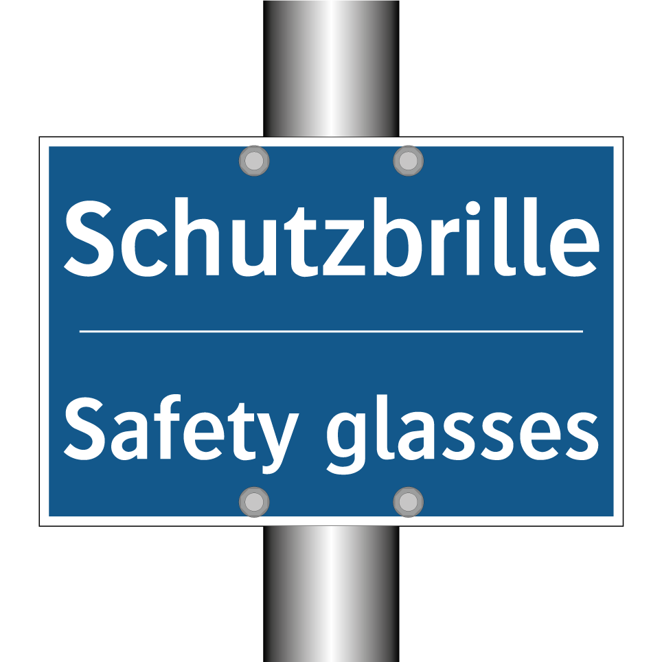 Zweisprachiges Verbotsschild mit deutschem Text Schutzbrille und englischem Text Safety glasses