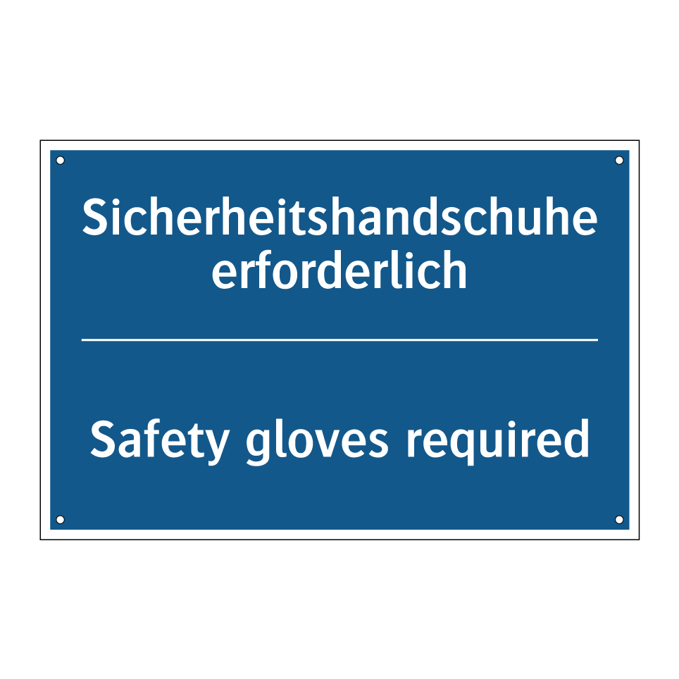 Zweisprachiges Verbotsschild mit deutschem Text Sicherheitshandschuhe erforderlich und englischem Text Safety gloves required