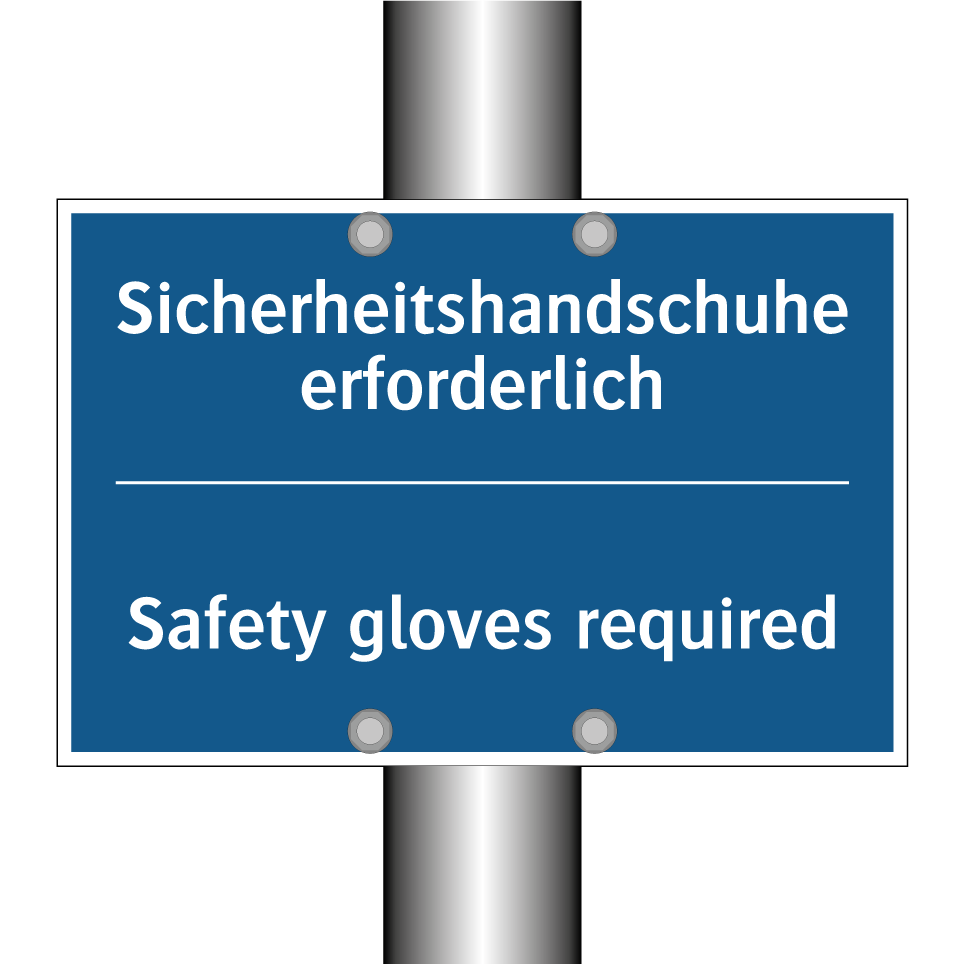 Entdecken Sie die Vielseitigkeit unserer Gebotsschilder, die für eine sichere Arbeitsumgebung unerlässlich sind. Diese zweisprachige Gebotsschild mit blauer Hintergrundfarbe und weißer Schrift informiert auf Deutsch und Englisch über die Notwendigkeit, Schutzhandschuhe zu tragen. Ideal für den Einsatz in industriellen Umgebungen, Werkstätten oder Laboren, wo der Schutz der Hände oberste Priorität hat. Die zweisprachige Beschriftung gewährleistet, dass sowohl deutsch- als auch englischsprachige Mitarbeiter die Sicherheitsanweisungen problemlos verstehen können. Platzieren Sie dieses Schild an gut sichtbaren Stellen, um die Einhaltung der Sicherheitsvorschriften zu fördern und Unfälle zu vermeiden.