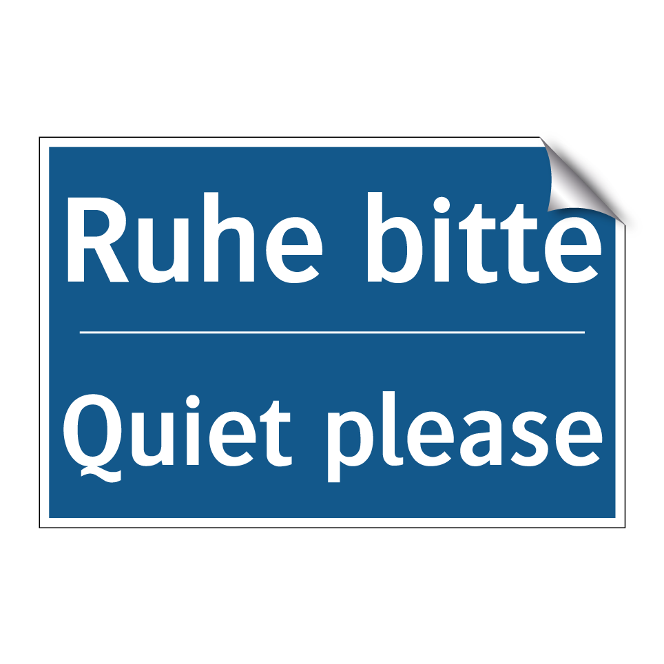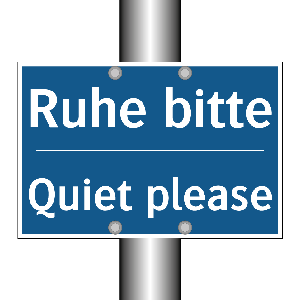 Zweisprachiges Verbotsschild mit deutschem Text Ruhe bitte und englischem Text Quiet please