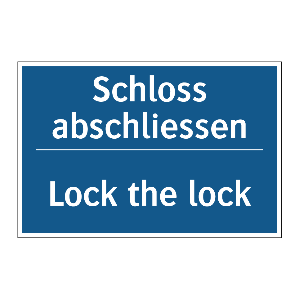Zweisprachiges Verbotsschild mit deutschem Text Schloss abschliessen und englischem Text Lock the lock