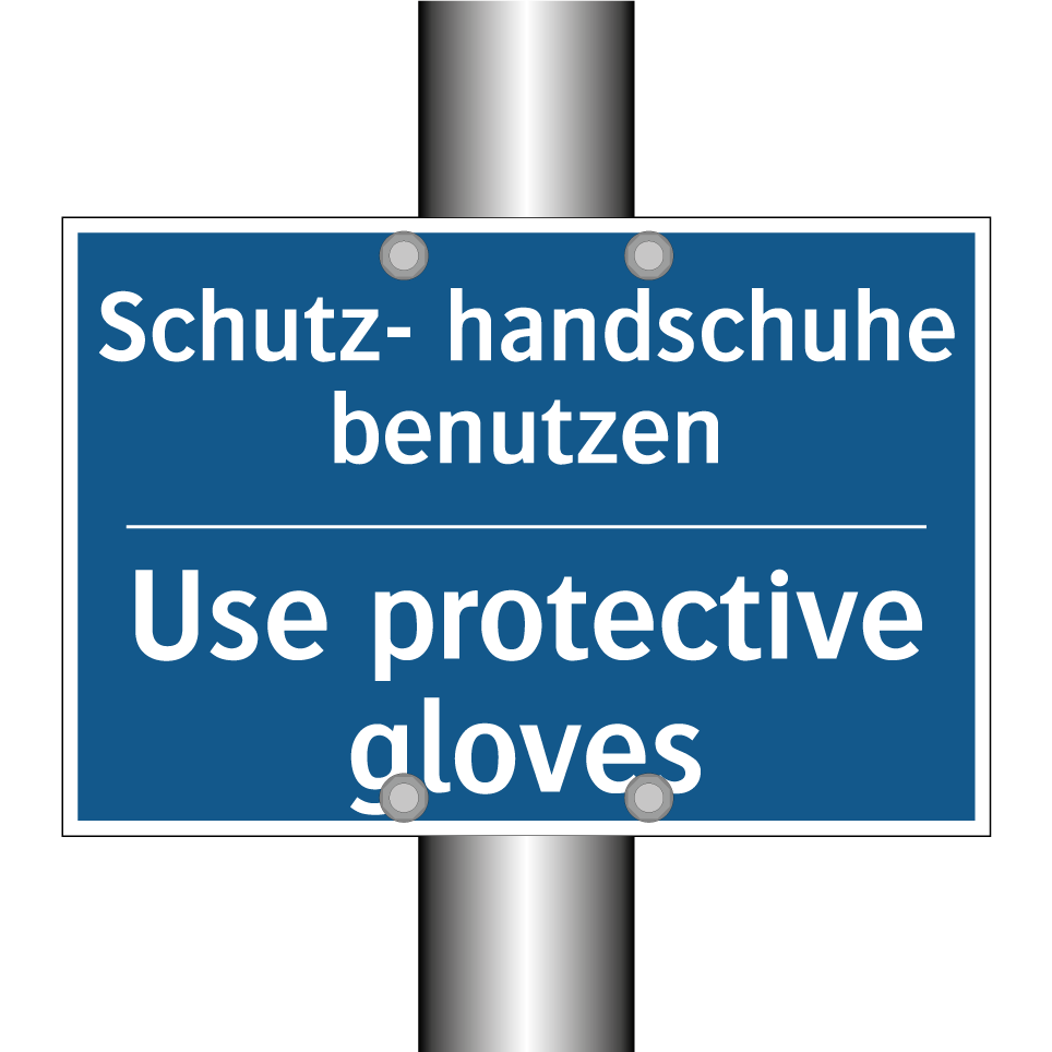 Zweisprachiges Verbotsschild mit deutschem Text Schutz- handschuhe benutzen und englischem Text Use protective gloves