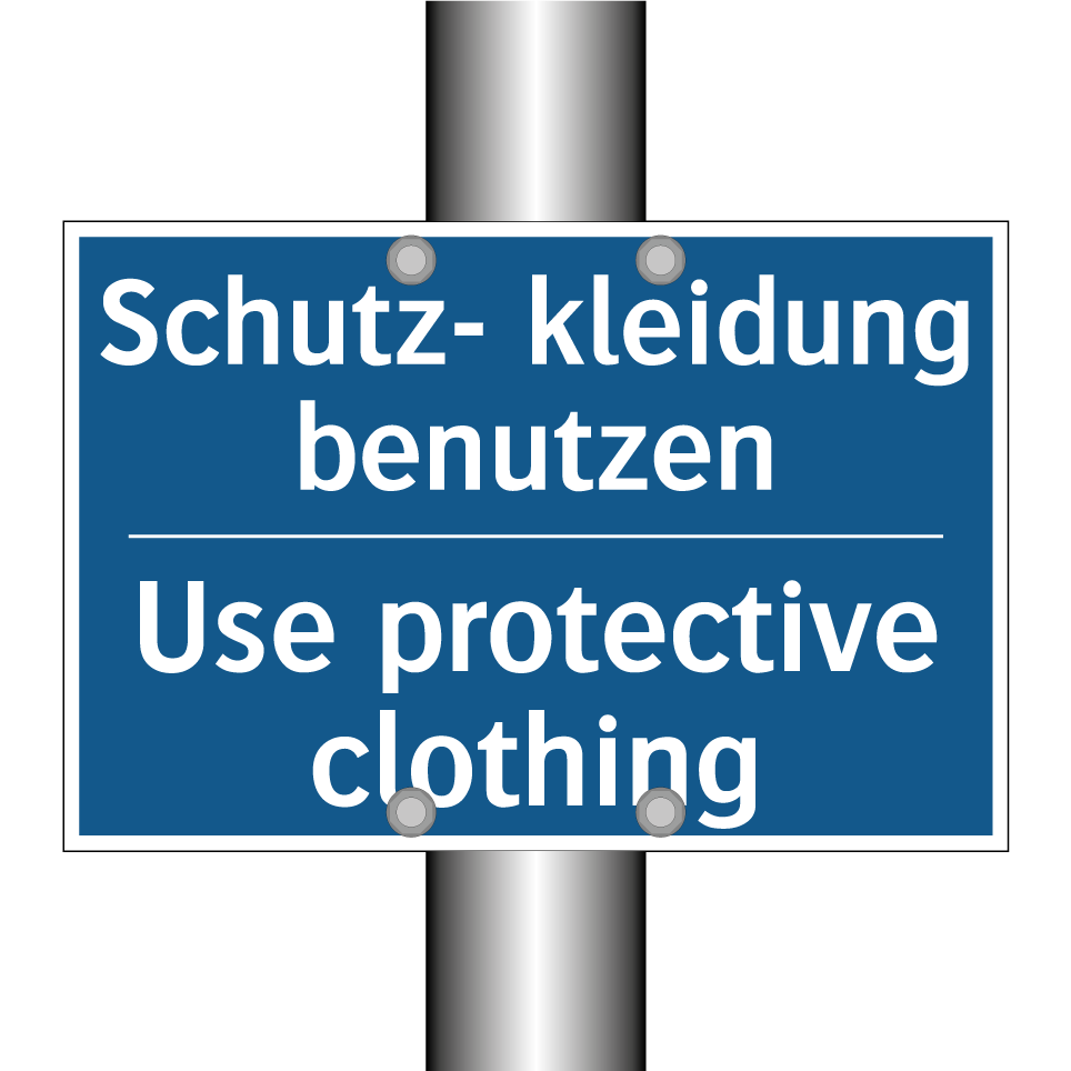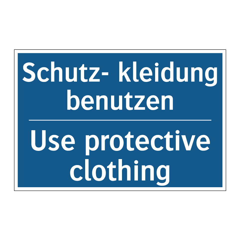 Zweisprachiges Verbotsschild mit deutschem Text Schutz- kleidung benutzen und englischem Text Use protective clothing