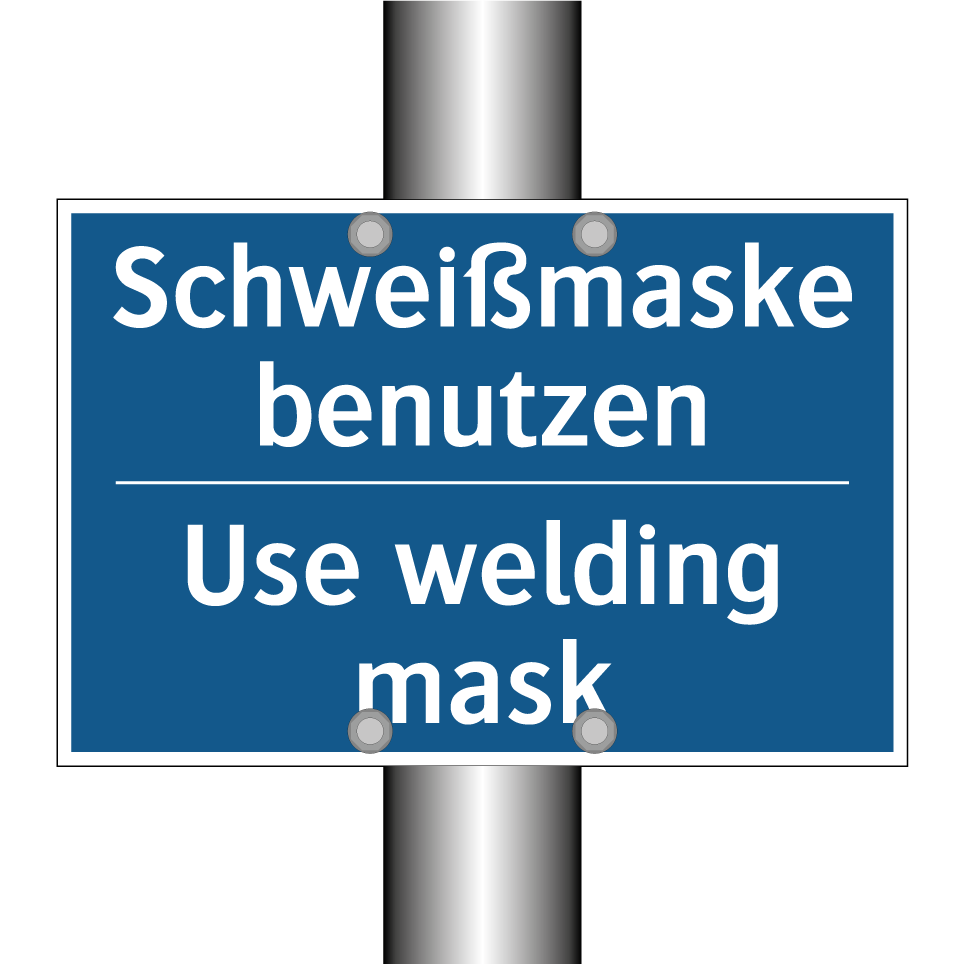 Zweisprachiges Verbotsschild mit deutschem Text Schweißmaske benutzen und englischem Text Use welding mask