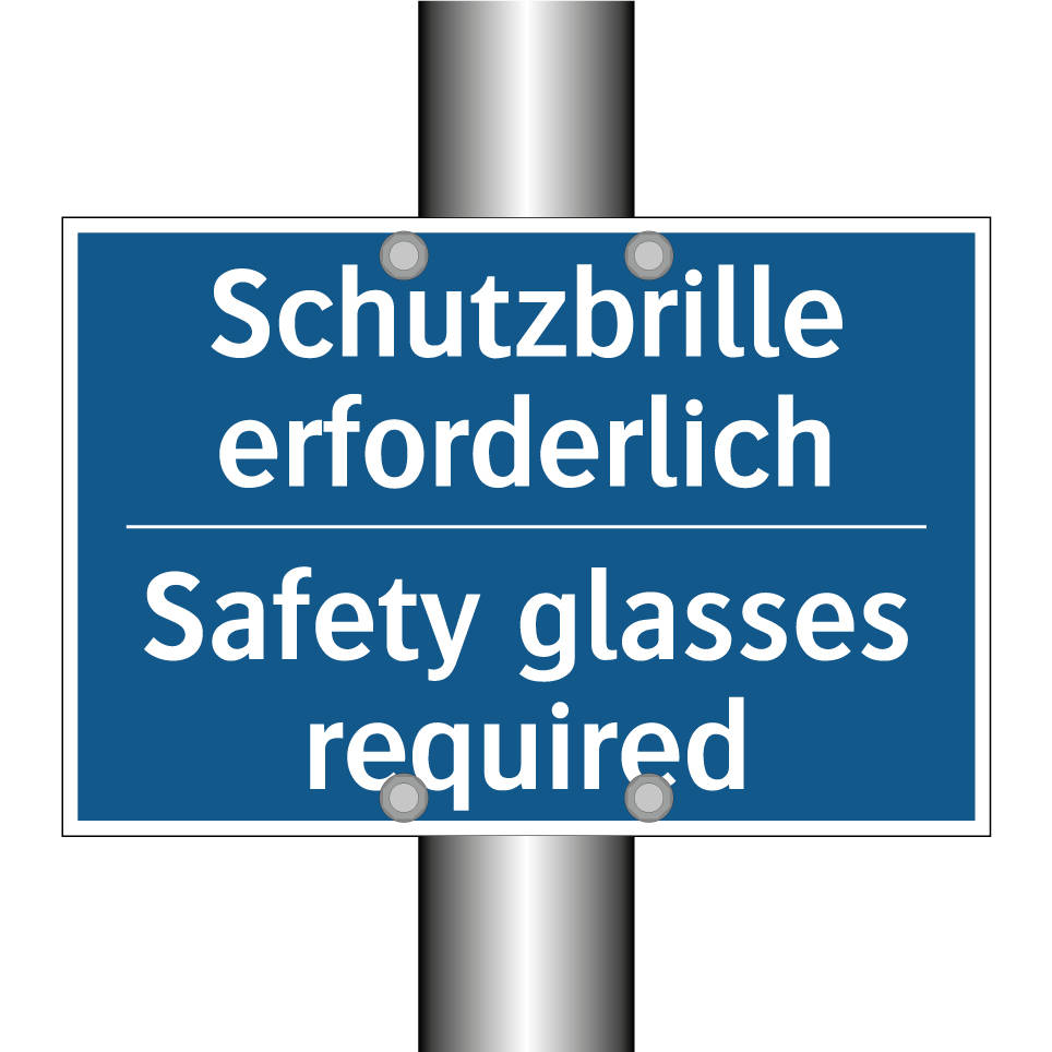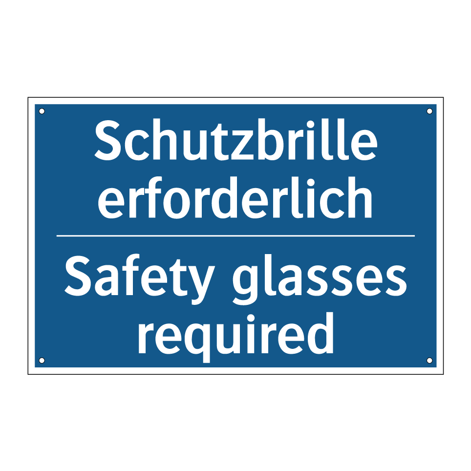 Zweisprachiges Verbotsschild mit deutschem Text Schutzbrille erforderlich und englischem Text Safety glasses required