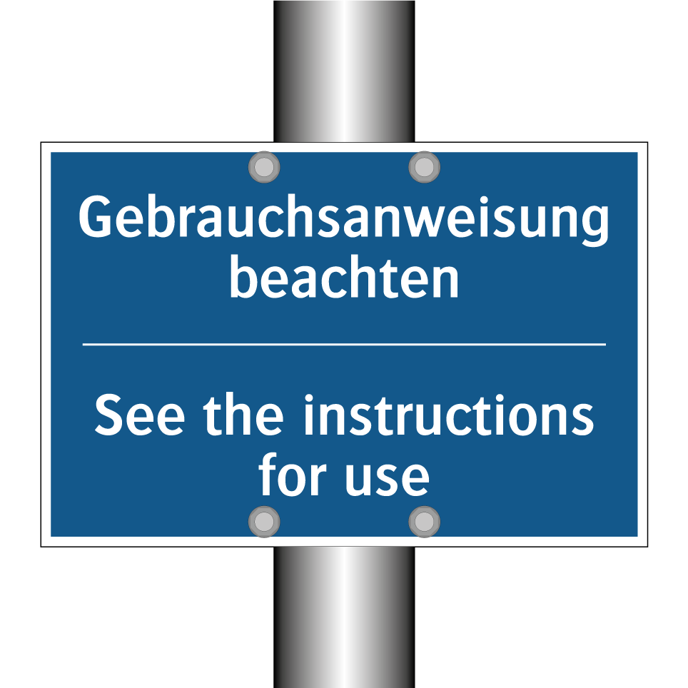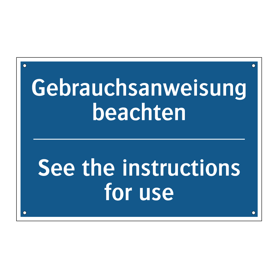 Zweisprachiges Verbotsschild mit deutschem Text Gebrauchsanweisung beachten und englischem Text See the instructions for use