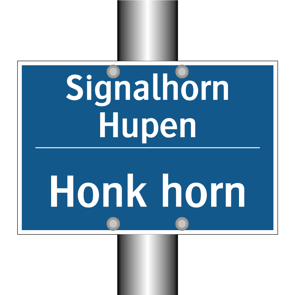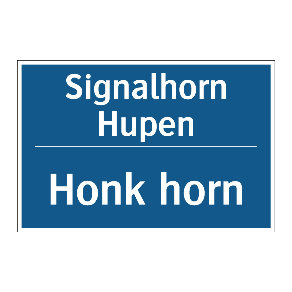 Zweisprachiges Verbotsschild mit deutschem Text Signalhorn Hupen und englischem Text Honk horn
