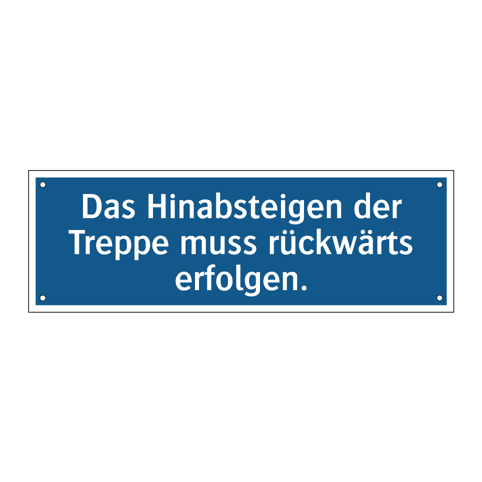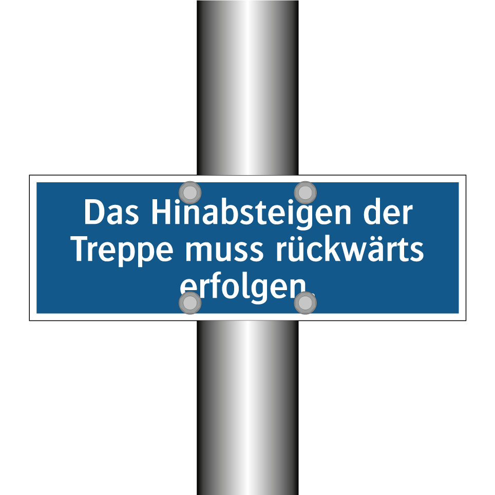 Gebotsschild mit dem Text Das Hinabsteigen der Treppe muss rückwärts erfolgen.