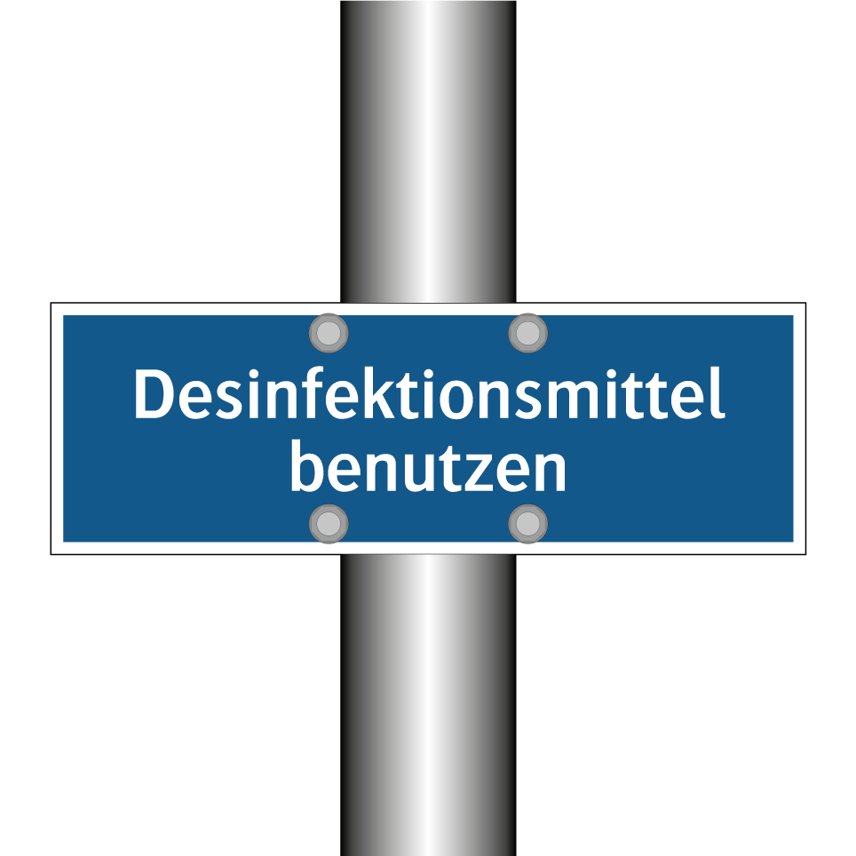 Gebotsschild mit dem Text Desinfektionsmittel benutzen