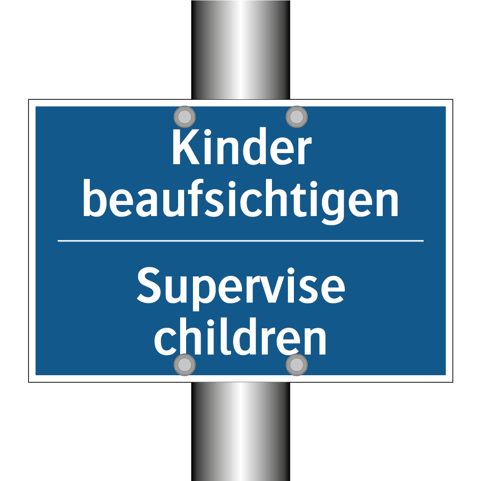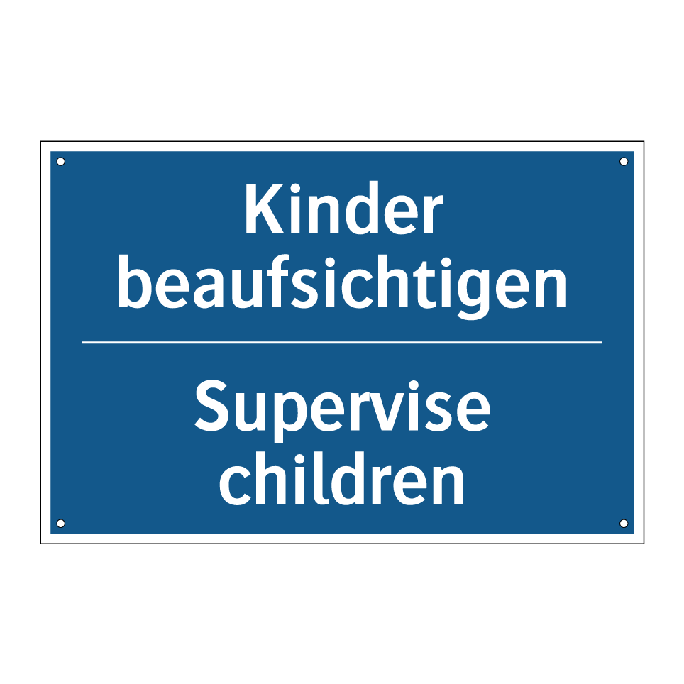Zweisprachiges Verbotsschild mit deutschem Text Kinder beaufsichtigen und englischem Text Supervise children
