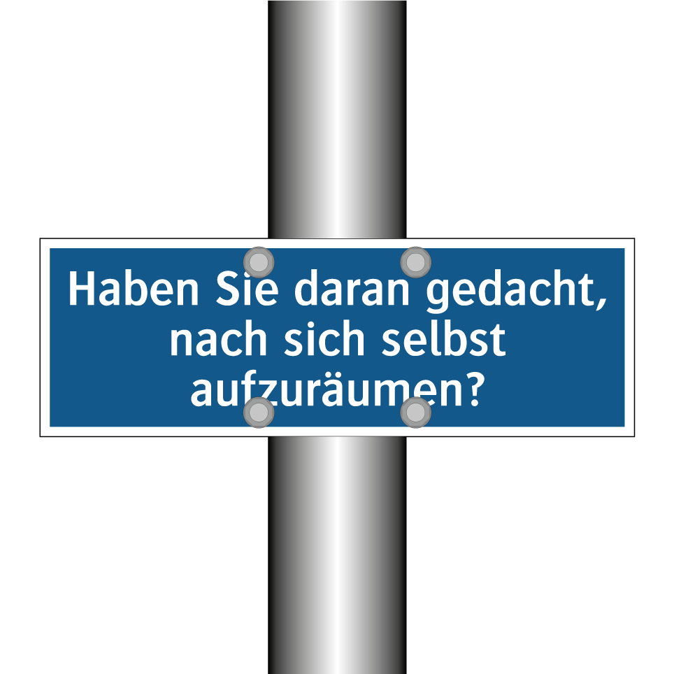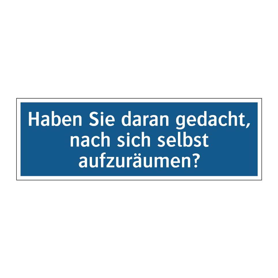 Gebotsschild mit dem Text Haben Sie daran gedacht, nach sich selbst aufzuräumen?
