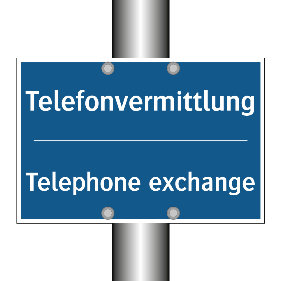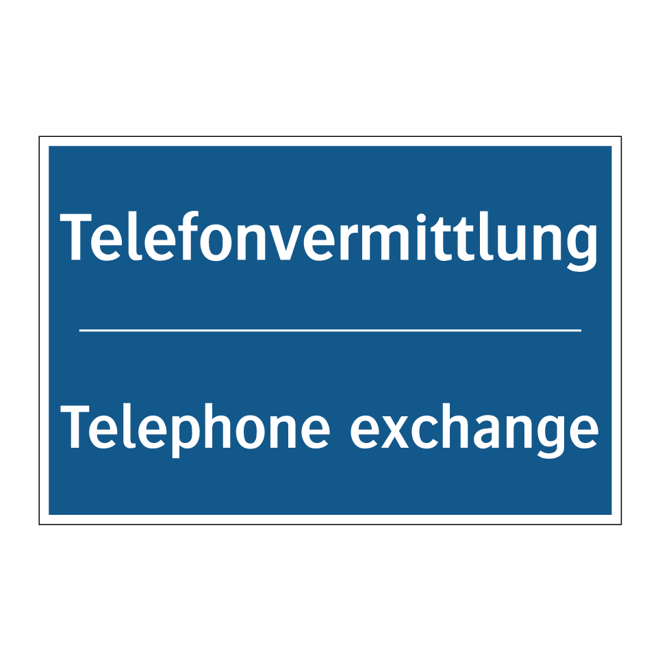Zweisprachiges Verbotsschild mit deutschem Text Telefonvermittlung und englischem Text Telephone exchange