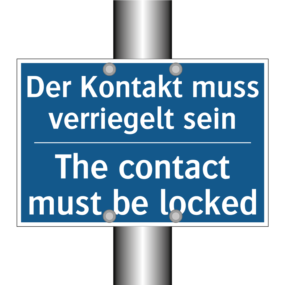 Zweisprachiges Verbotsschild mit deutschem Text Der Kontakt muss verriegelt sein und englischem Text The contact must be locked