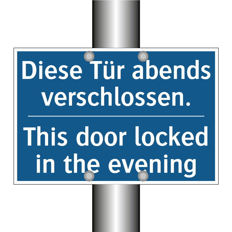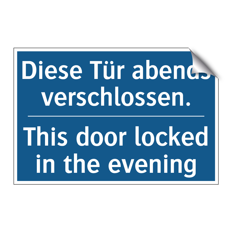 Zweisprachiges Verbotsschild mit deutschem Text Diese Tür abends verschlossen. und englischem Text This door locked in the evening