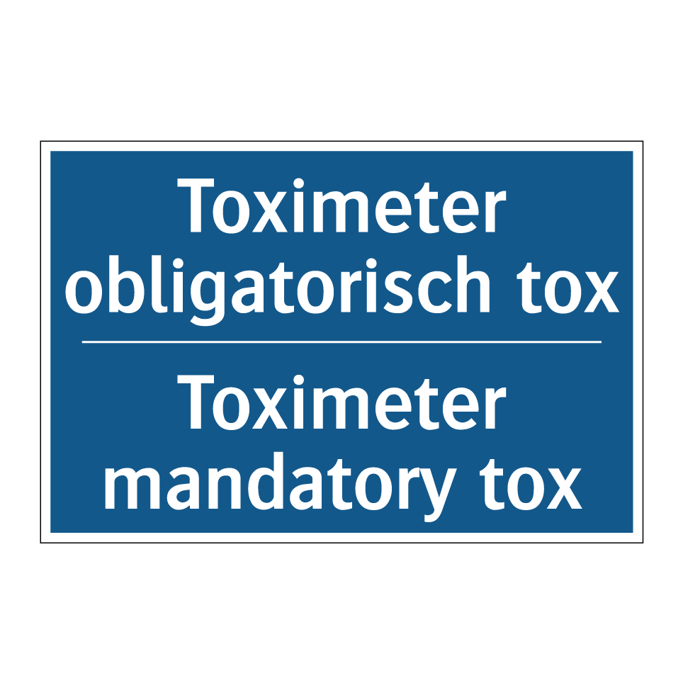Zweisprachiges Verbotsschild mit deutschem Text Toximeter obligatorisch tox und englischem Text Toximeter mandatory tox