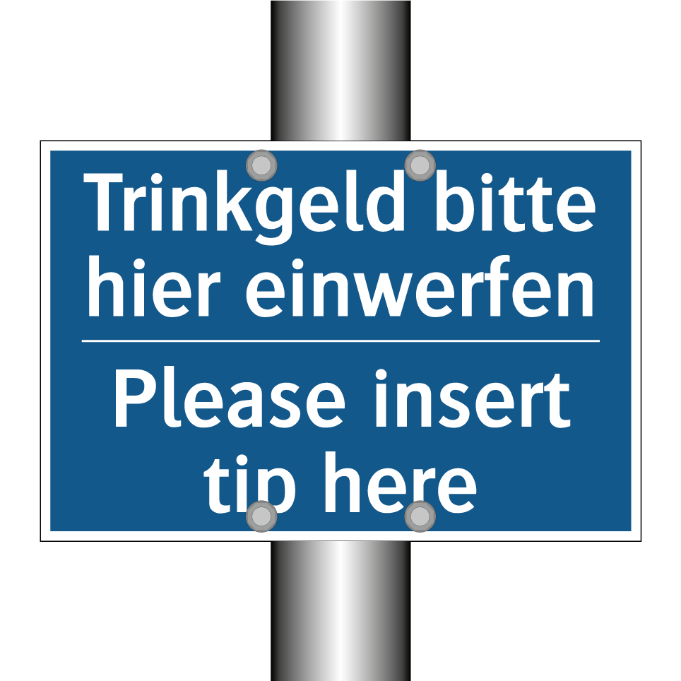 Zweisprachiges Verbotsschild mit deutschem Text Trinkgeld bitte hier einwerfen und englischem Text Please insert tip here
