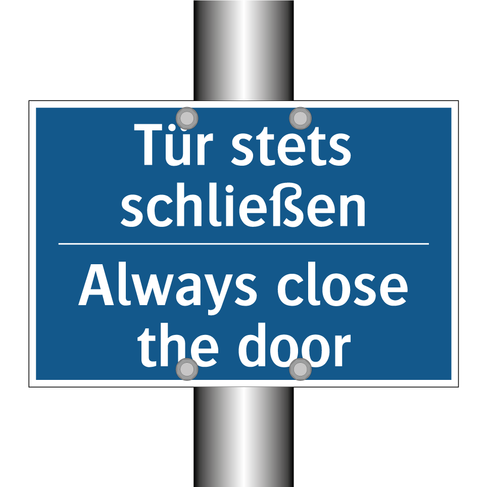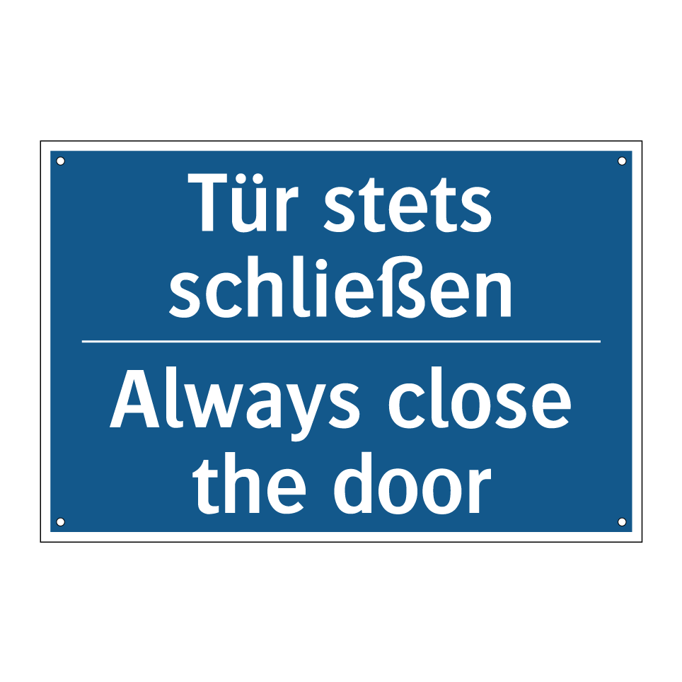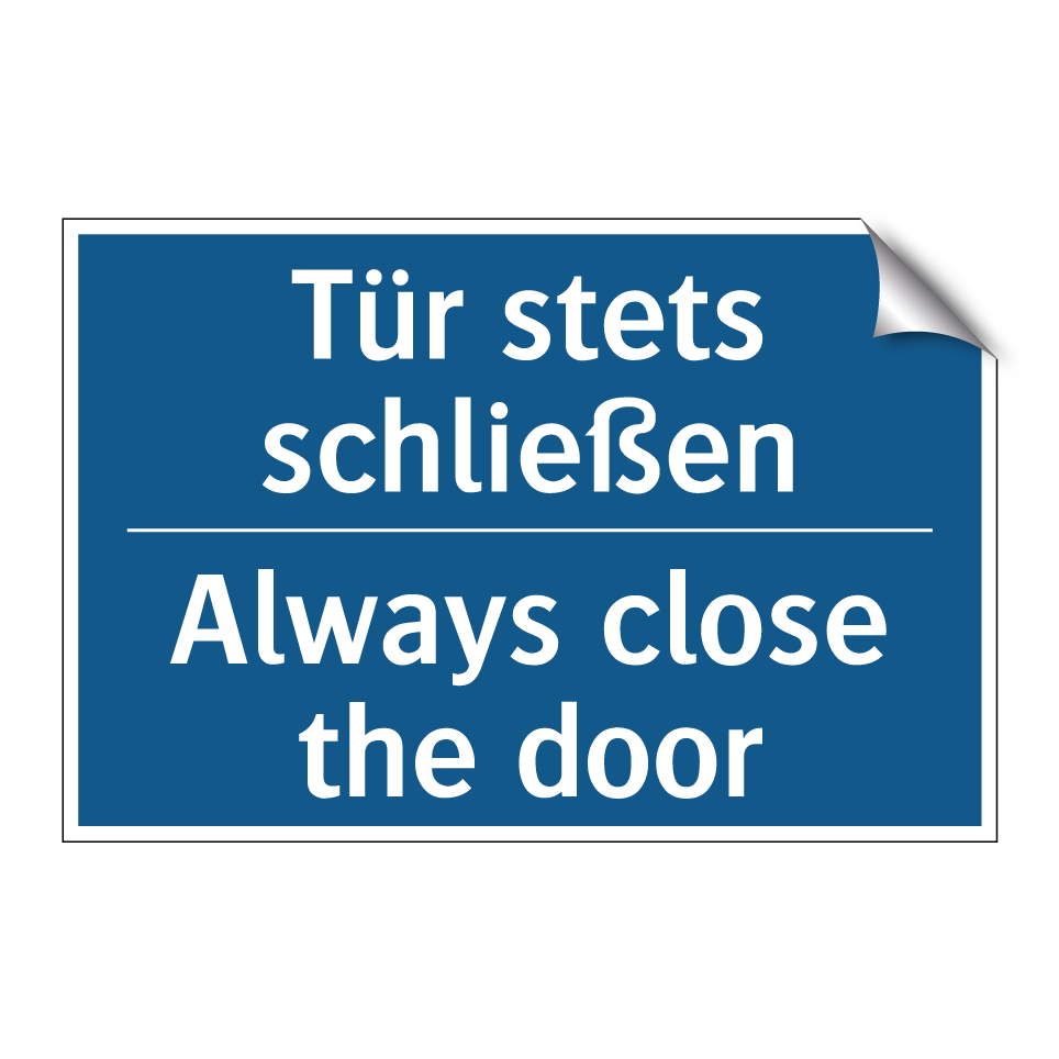 Zweisprachiges Verbotsschild mit deutschem Text Tür stets schließen und englischem Text Always close the door